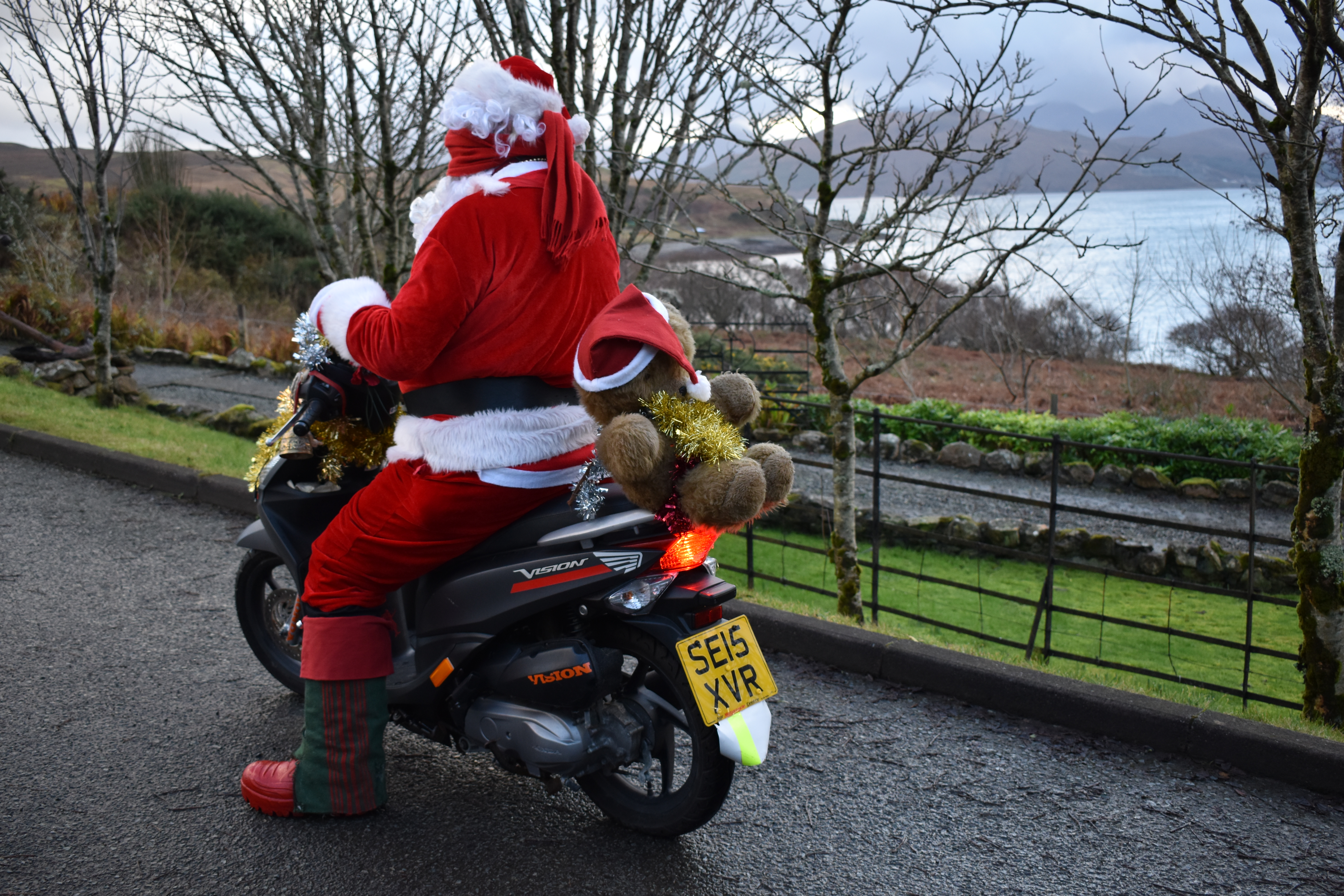 We all know that this year Christmas is going to be very different – however, Santa still found a way to pay the Raasay School Children a visit! He took time out of his very busy schedule to make a quick stop at the school to wish us all a Merry Christmas. Breaking from tradition – he arrived on his scooter, with teddy riding pillion!
