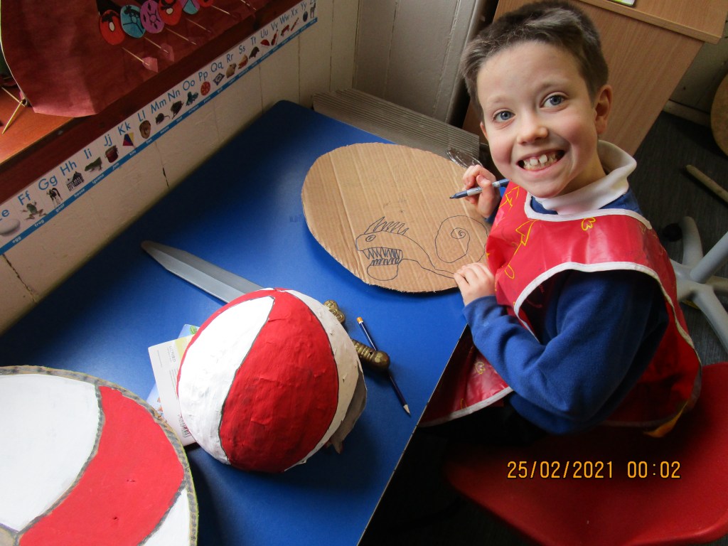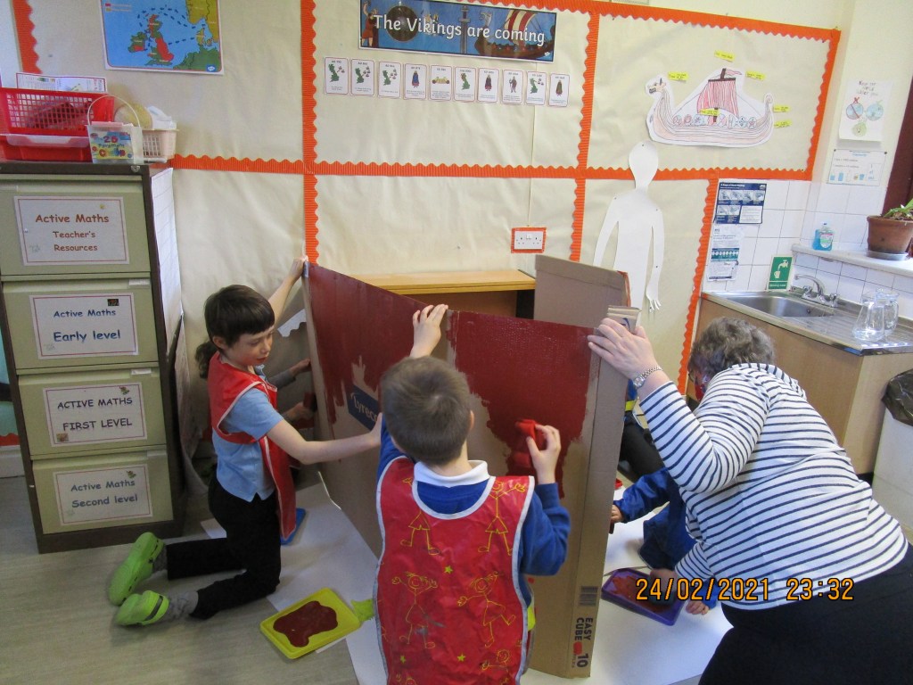 Pupils are now well underway with their project ‘The Vikings’. Last week they took part in an online, live workshop where they learnt about Viking Gods and pupils enjoyed taking on the role of certain Gods for a Viking Saga. They are presently working on a 3D model of a Viking Long Boat and making their own shields and helmets.