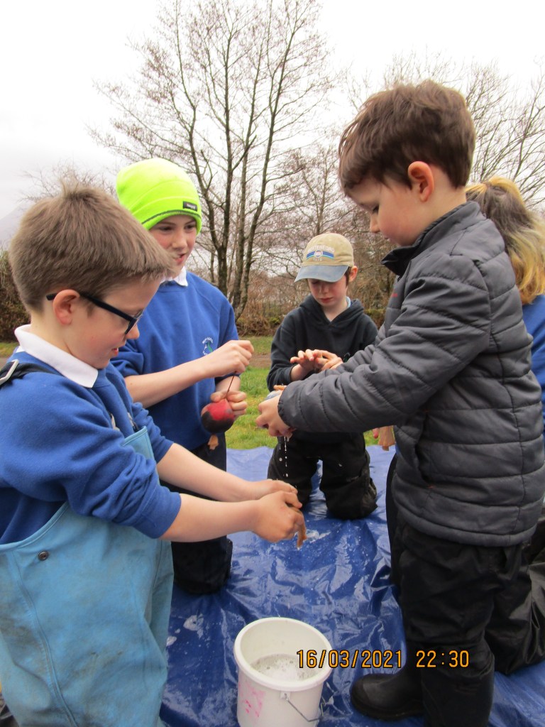 These cute felt covered ‘Pebble Pets’ are the ideal pet – no mess, no fuss and always there when you need them! Pupils designed and made their own felt covered pebble creatures, can you spot them hiding in the woods?