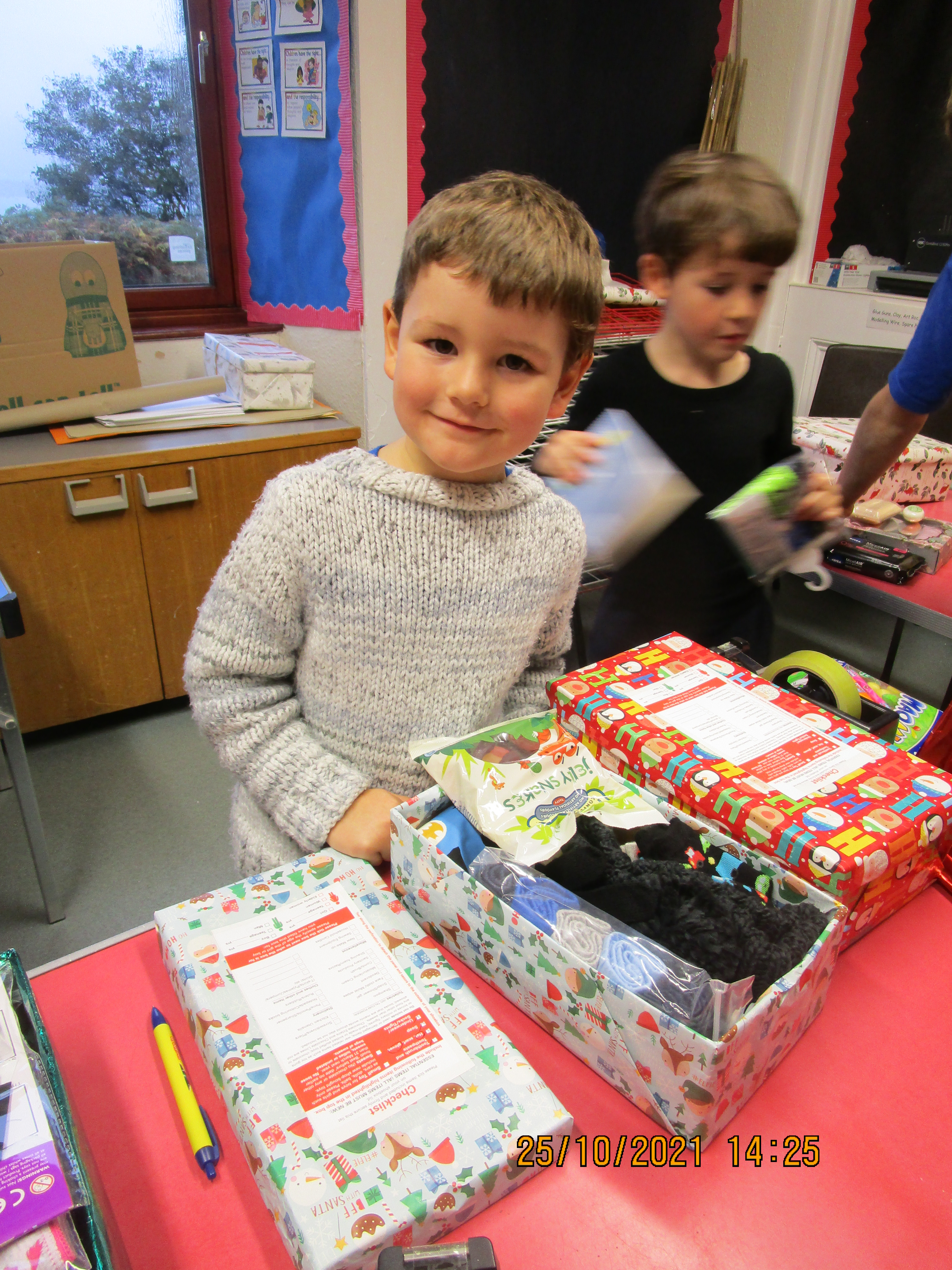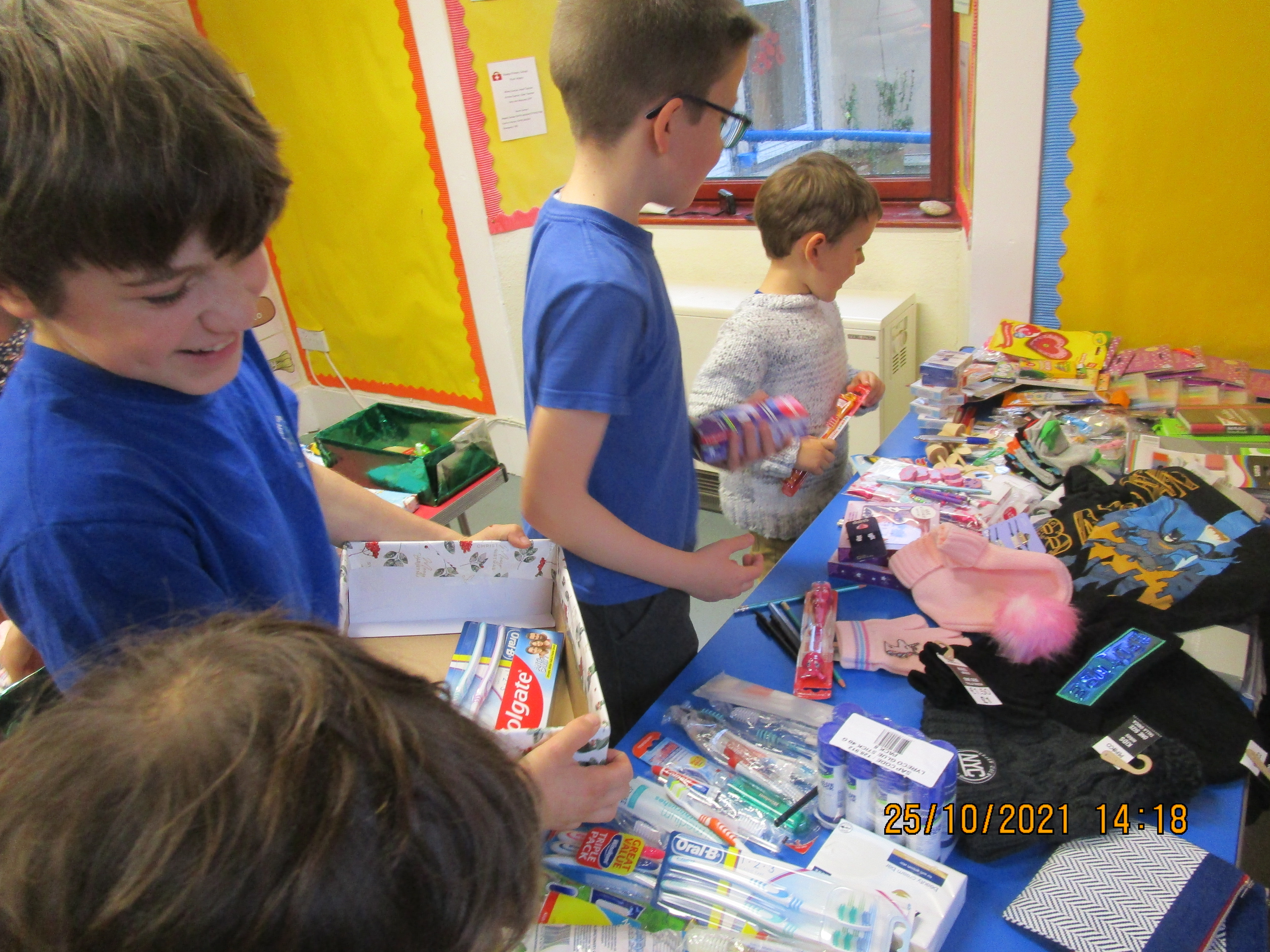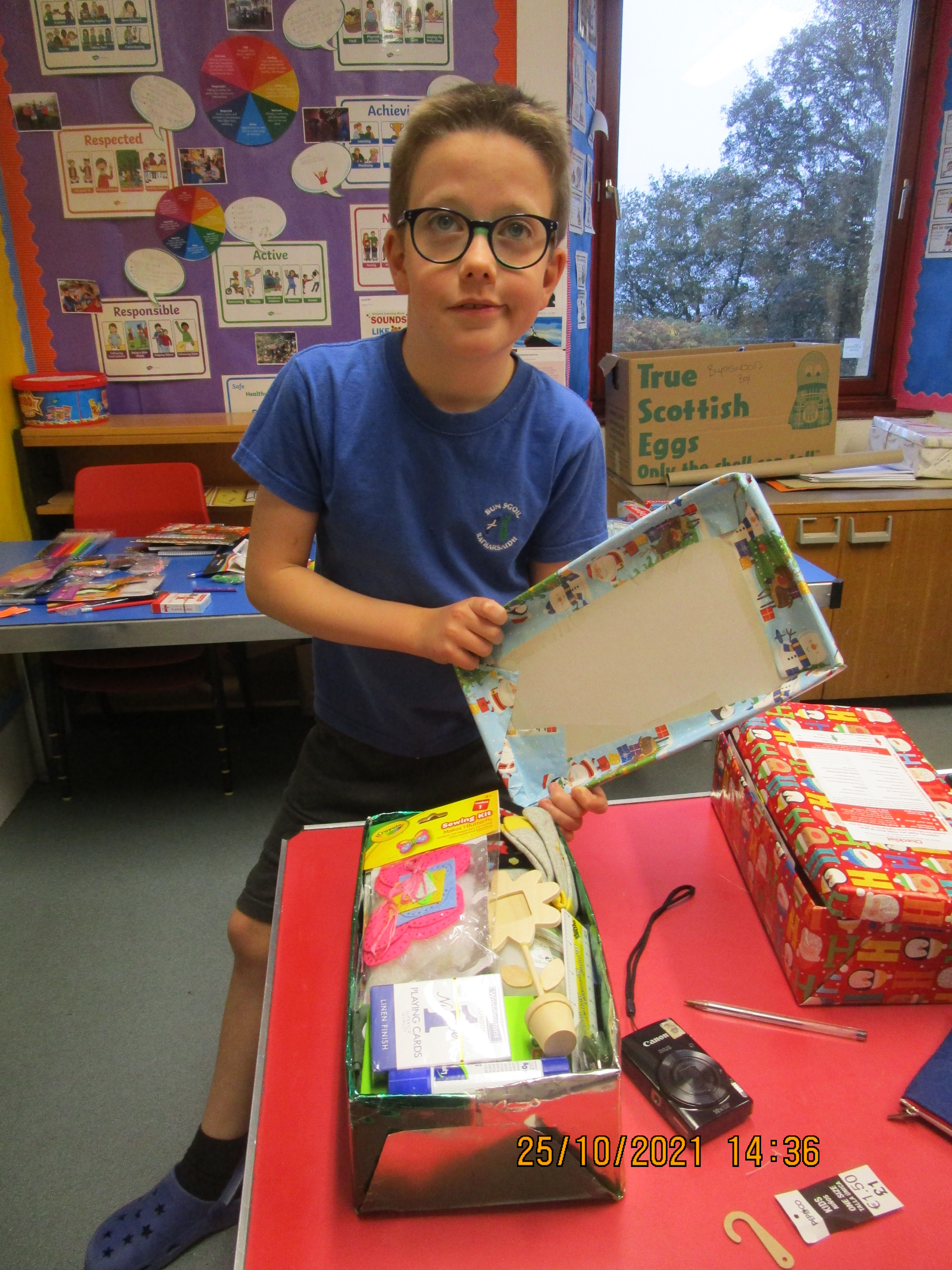As part of our charity work this term, pupils have taken part in the Blythswood Shoebox Appeal. Items for the boxes were kindly donated via a collection box at Raasay Community Stores, filled shoebox donations from members of the community, parents and staff. Pupils stayed on after school on Tuesday 26th October to fill the shoeboxes with all the items that were donated. Before they did so they watched a short video about the work of Blythswood and the impact of the shoebox donations to families in Eastern European countries. The boys carefully chose appropriate items for their intended recipient and we are sure that they will be gratefully appreciated. Well done boys for your fantastic charity work and bringing joy and a smile to children and families who you have never met before and to whom you will be making a big difference this Christmas. A total of 10 boxes will be sent on to the Blythswood Distribution Centre, with extra left-over items also being sent on. Little ACORNS (All Children Of Raasay Nursery and School) making a big difference!