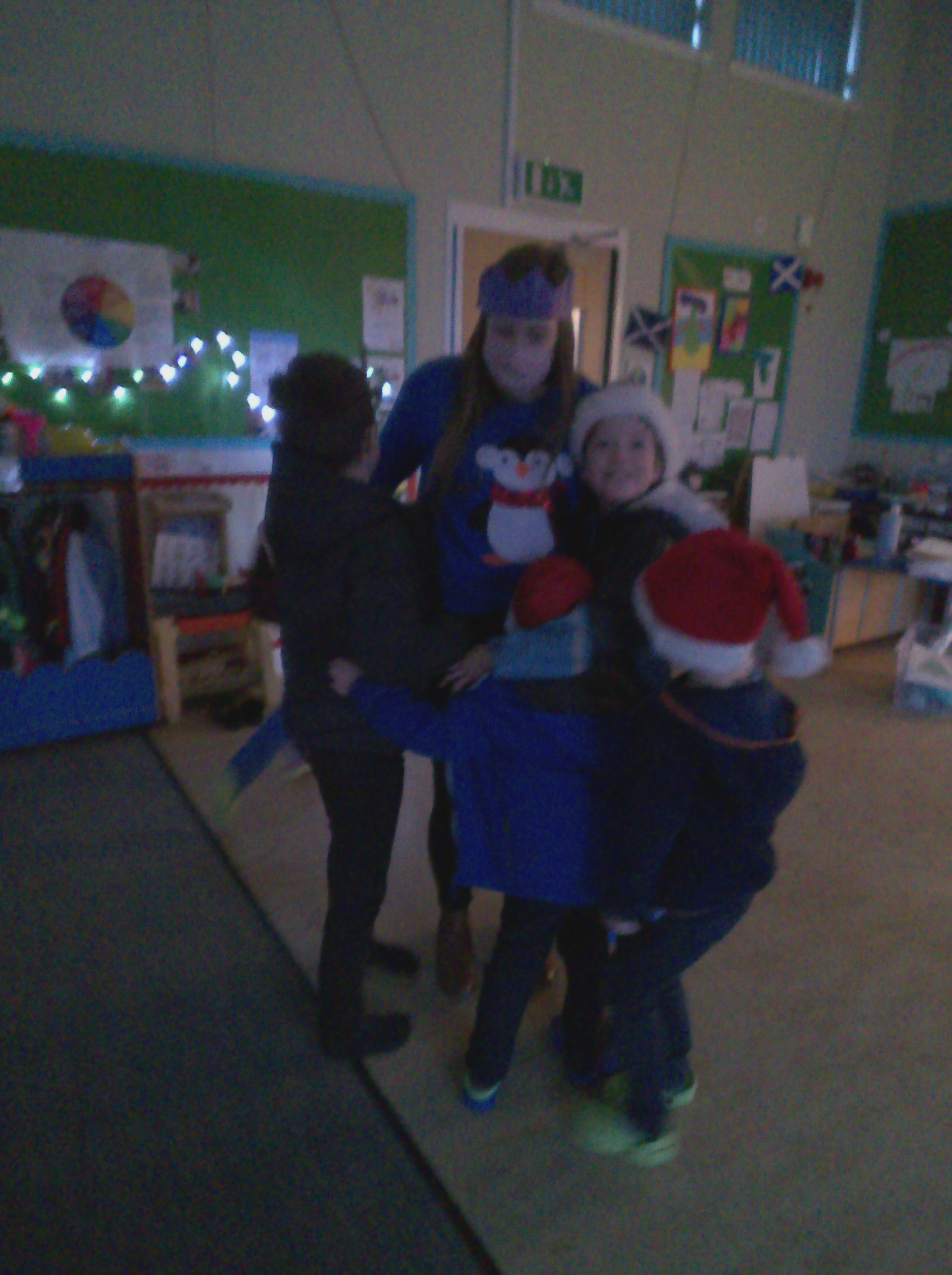 On Tuesday 21st December pupils at Raasay Primary School had their Christmas Lunch and Party. Our amazing cook, Tekela produced an extremely delicious turkey dinner which was thoroughly enjoyed by all! So much so that there weren’t many left overs for the ‘left-over pie’ that Tekela was planning for the next day’s lunch. Lots of fun was had with various party games including ‘Wrap the Teacher’, ‘Christmas Corners’ and, of course ‘Pass the Parcel’.