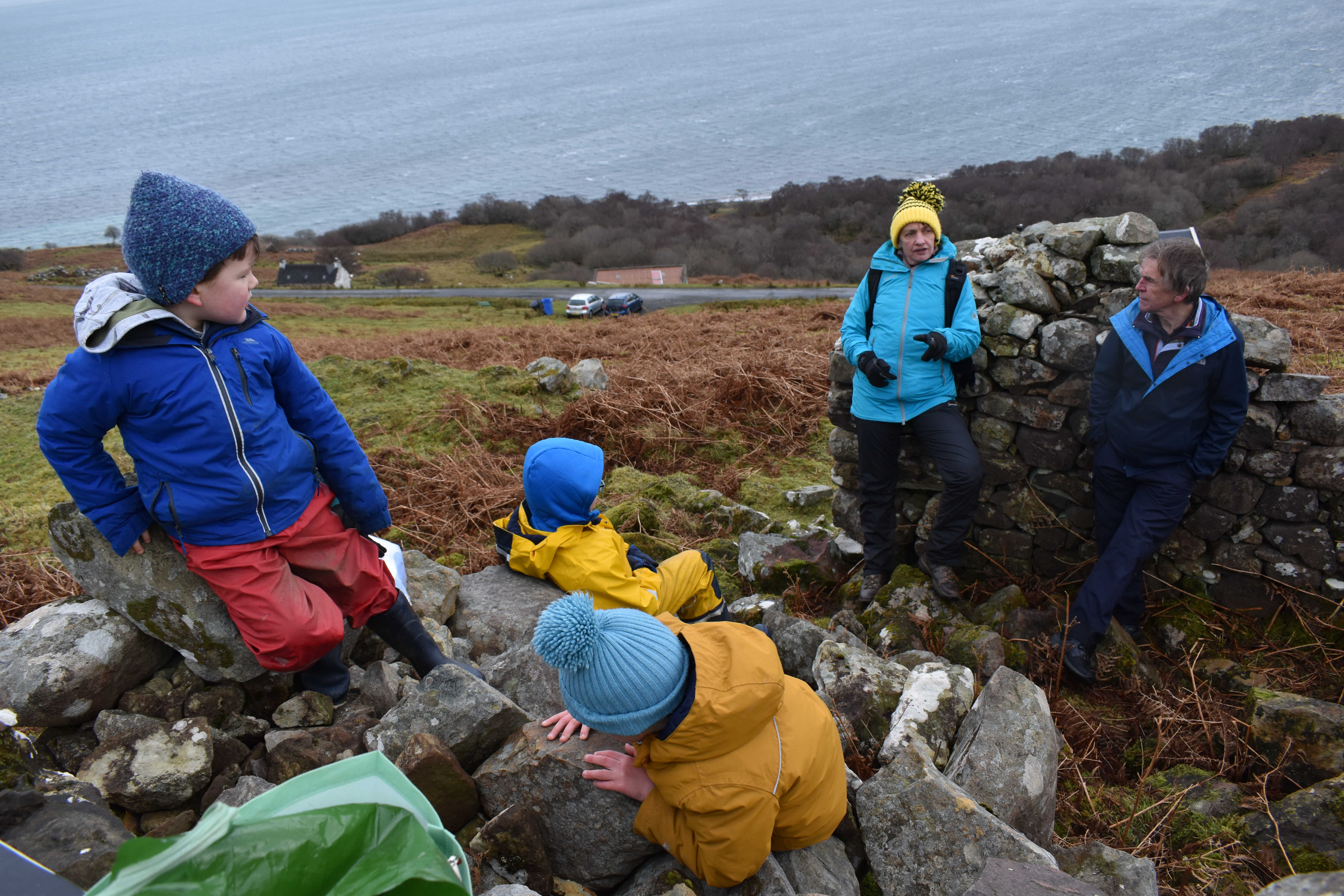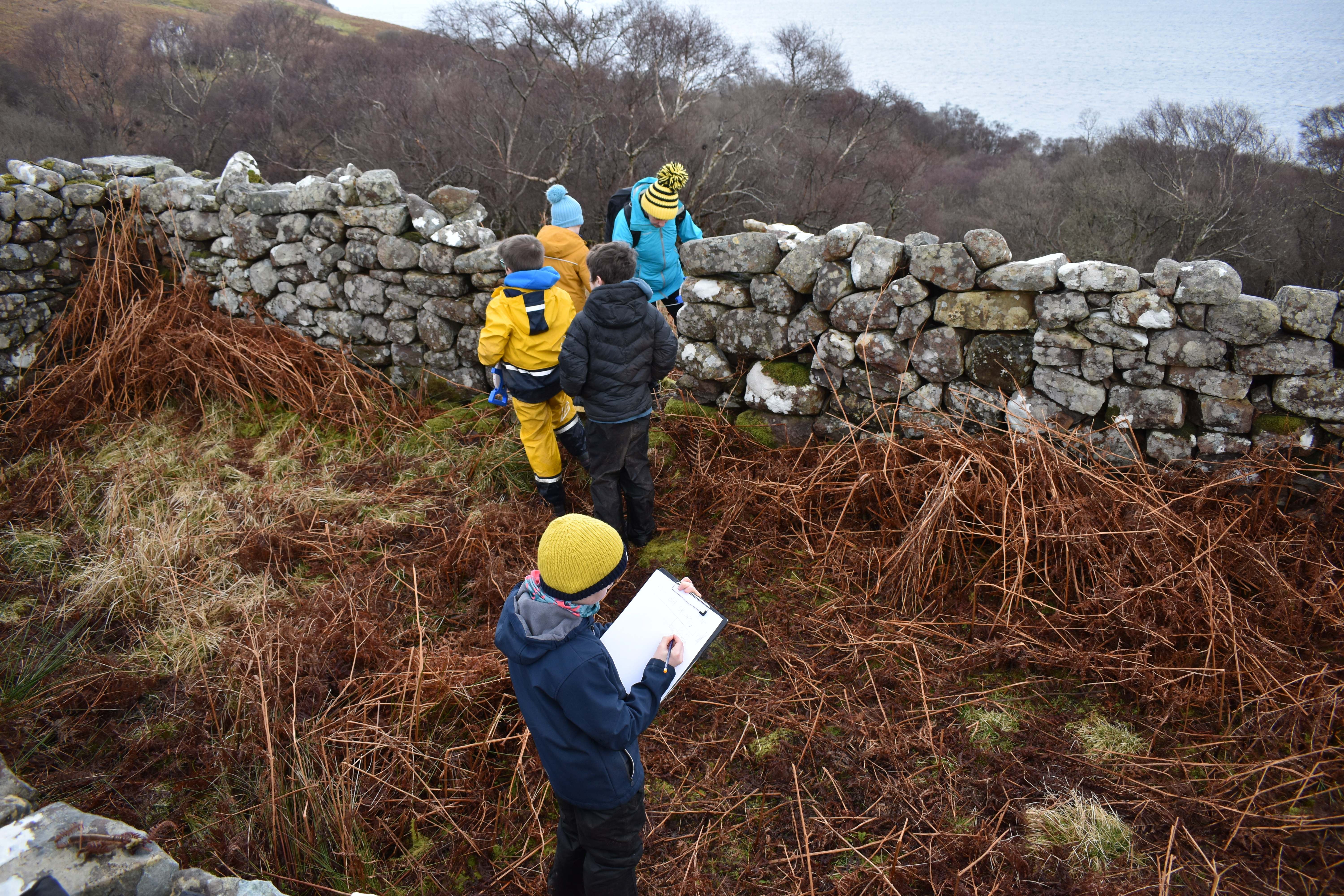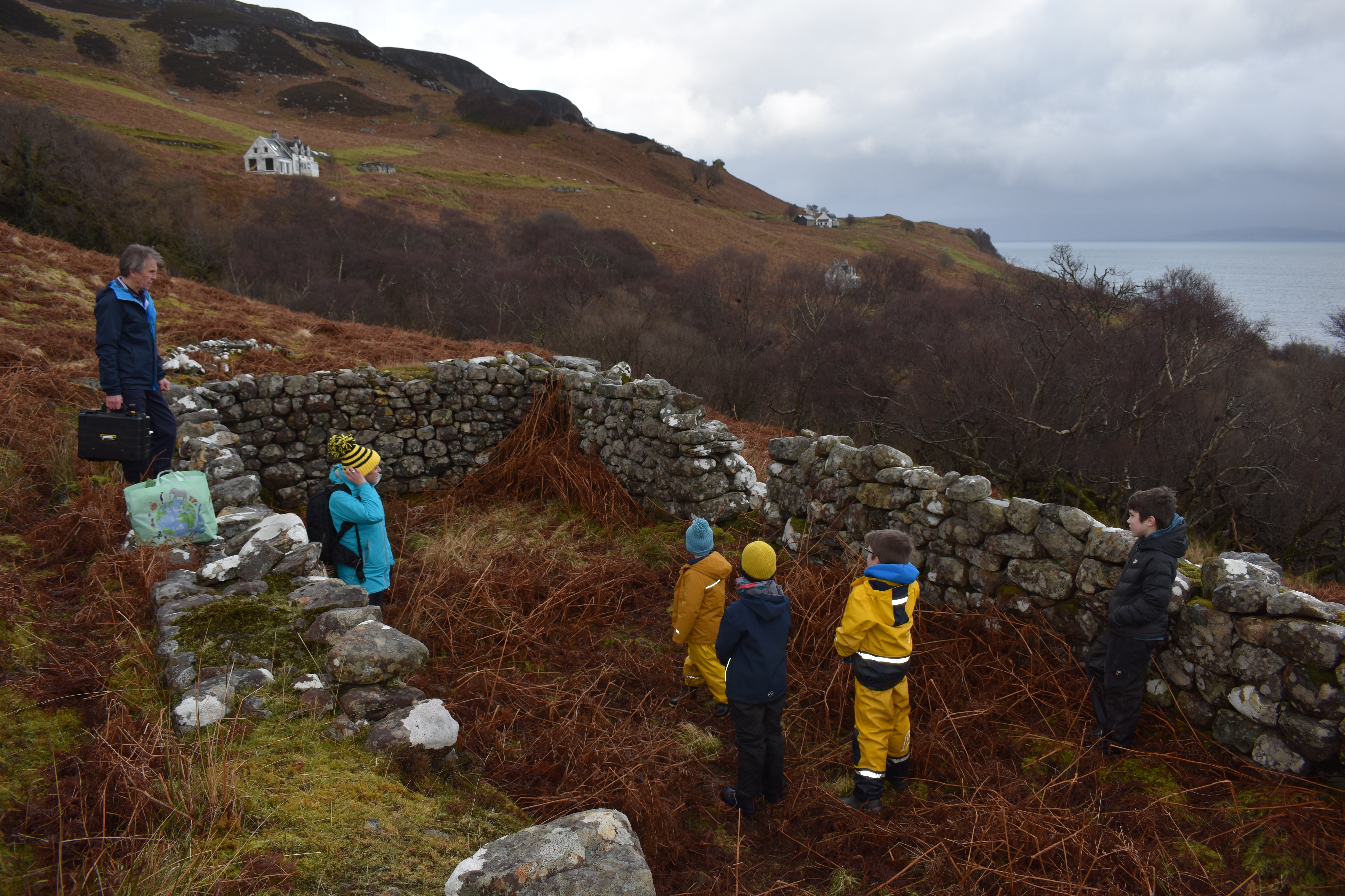 Pupils will be working with Anne Martin and Cailean MacLean over the next few weeks as part of the Treoir Project. The project is part of the ‘Year of Storytelling’ and pupils will be learning about how people on Raasay lived in the past. Their first fieldtrip was to the ruins of the settlements at Fearns where pupils studied the ruins to understand how people lived and what challenges they faced. They noted that the best preserved ruin was that which was used as the shop.