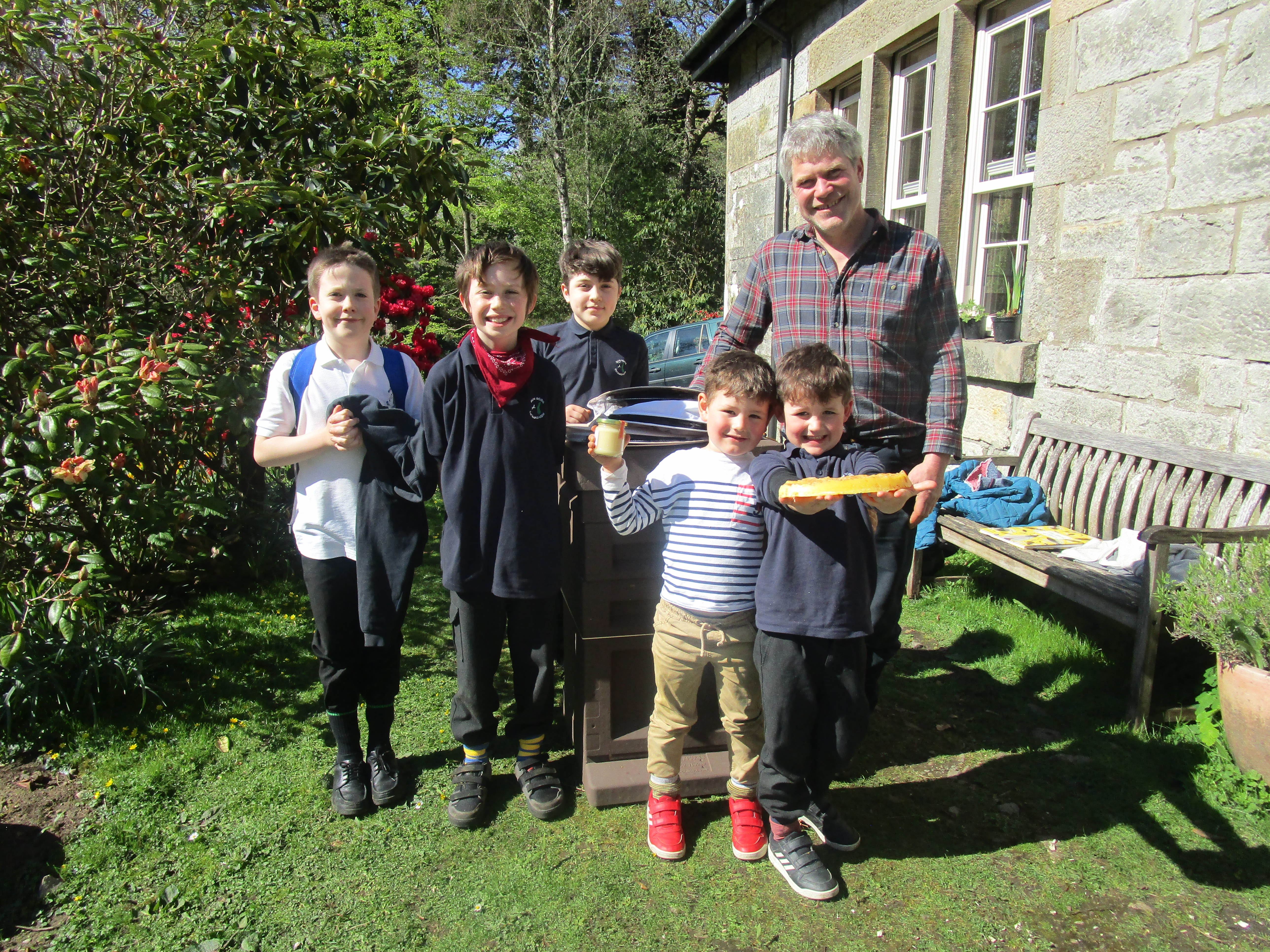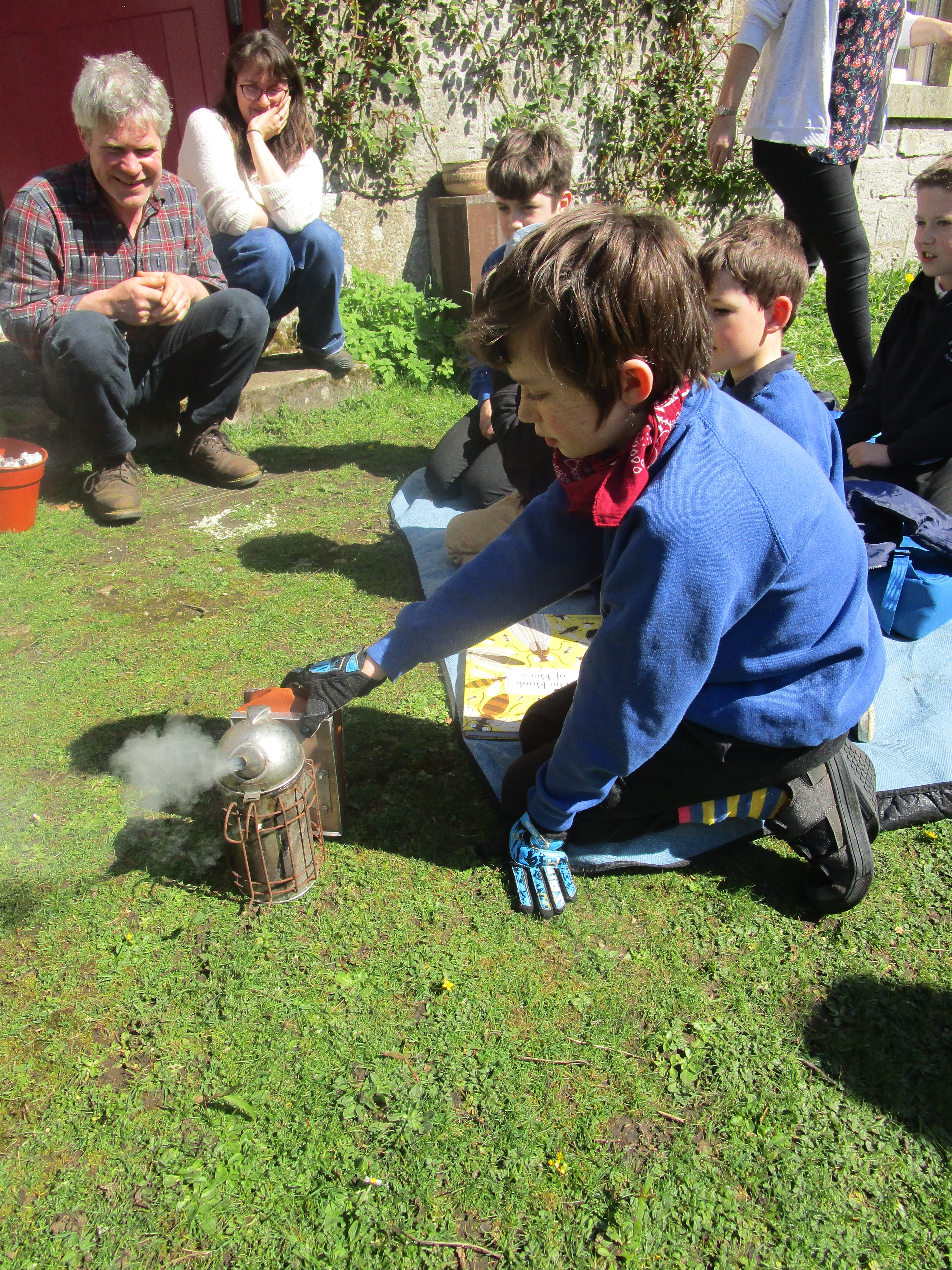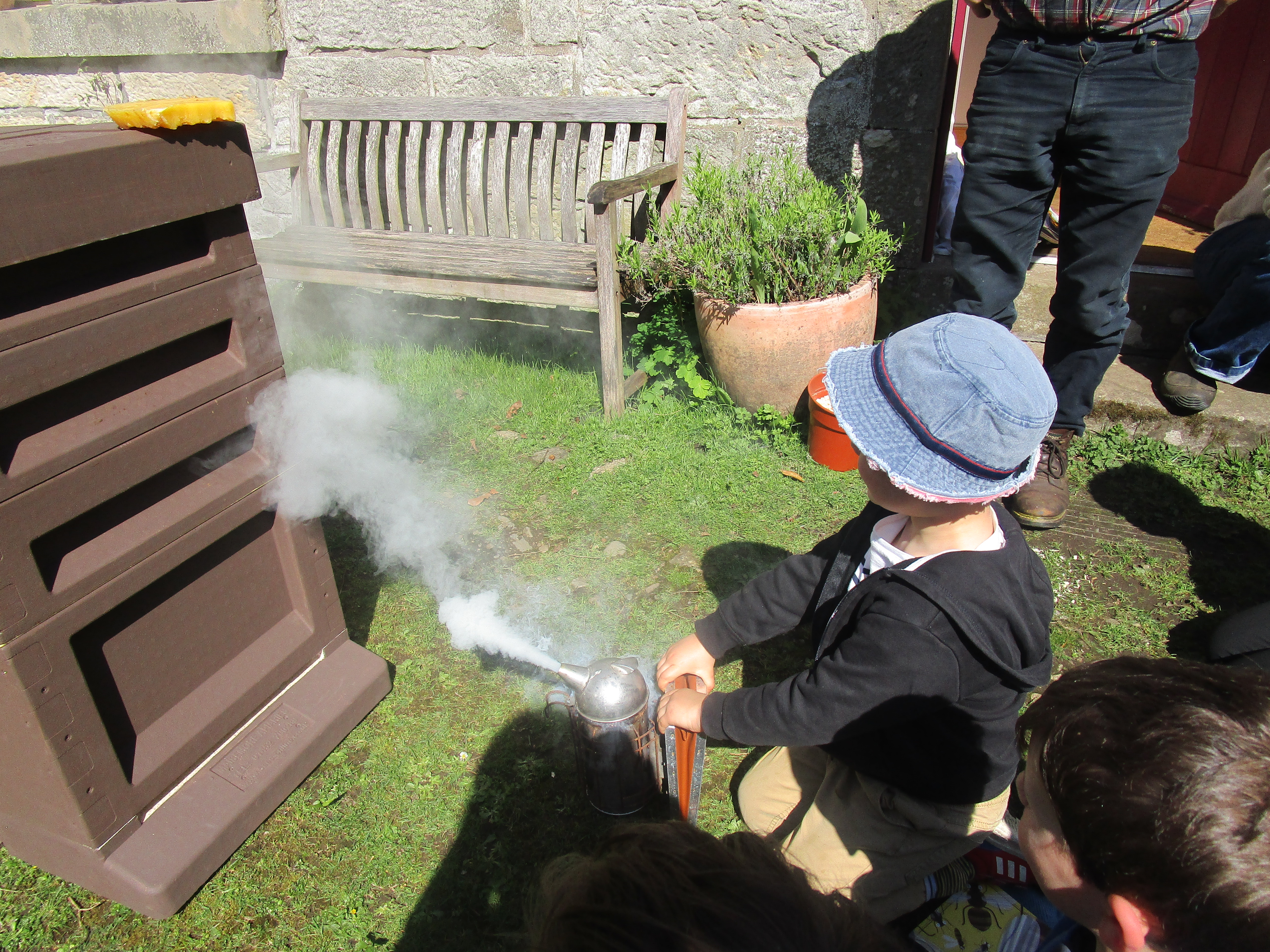 On our first week back after the Easter Holidays we have been focussing on learning about environmental issues. During our literacy, we read up about the lifecycle of bees and how important they are because they polinate flowers and help plants make fruit and vegetables. We learnt all about what the queen bee spends most of her time doing (laying eggs) and is in charge of the hive. We learnt that worker bees have many important jobs around the hive. The worker bees are also all female and they keep the hive cool by flapping their wings, they build the hive and keep it clean, protect the hive and collect pollen and nectar from flowers. We also learnt that drones have only one job – that is to mate with the queen, that bees make honey to provide food for the winter and that royal jelly is a food that is only fed to the queen and the larvae. In the summer, a queen can lay up to 2500 eggs a day and a bee flies at approximately 15kmph. Bees flap their wings about 200 times every second and a bee will only sting if it feels that it is in extreme danger. A worker bee lives for about a month and they do special dances to tell other workers where to find pollen. Around the world bees are becoming an endangered species and if there are no bees, we will have no food. We found out lots of interesting facts and we also learnt that bees are very clever and that scientists have trained them how to kick a bee sized ball into a net. Apparently they are visual learners and if they see another bee doing this then they will do it too (who knew!). Prior to our visit to see ‘real’ bees (thank you Hannah and Simon, we designed our own bee-friendly garden following some comprehension work on what made a bee-friendly garden. We did a short science experiment showing the important role bees have in polinating flowers. Each child was given a bee wrist band and a ‘flower’ – this was a paper bag with some powdery crisps inside – pupils ate the crisps to demonstrate that they were taking the nectar from the flower and then moved on to another paper bag (whereby they showed how the pollen was moved from flower to flower). After lunch we went to Hannah and Simon’s to learn about and see their bees and the honey production. We were even kitted out with special ‘bee’ hats and we got to see how beekeepers use smoke to calm the bees before removed the honeycomb frames. Simon also showed us the bottom of the hive where the queen bee lived and all the worker bees lived in a separate area. We also got to touch and smell the block of beeswax and discussed how beeswax was used in the past and even today in different products. Simon also told us that up to 60,000 could live in one of the hives at one time – if all the hives were full that would equate to around 400,000 bees. We had a very informative and interesting afternoon and we look forward to our next visit where we will be observing the extraction of the honey from the hives. In the meantime, Simon very kindly gave us a jar of Raasay honey (wild flower) which we will be having on our toast at snack time. What a fantastic opportunity to learn first hand about the importance of bees in our environment – thank you Simon and Hannah.