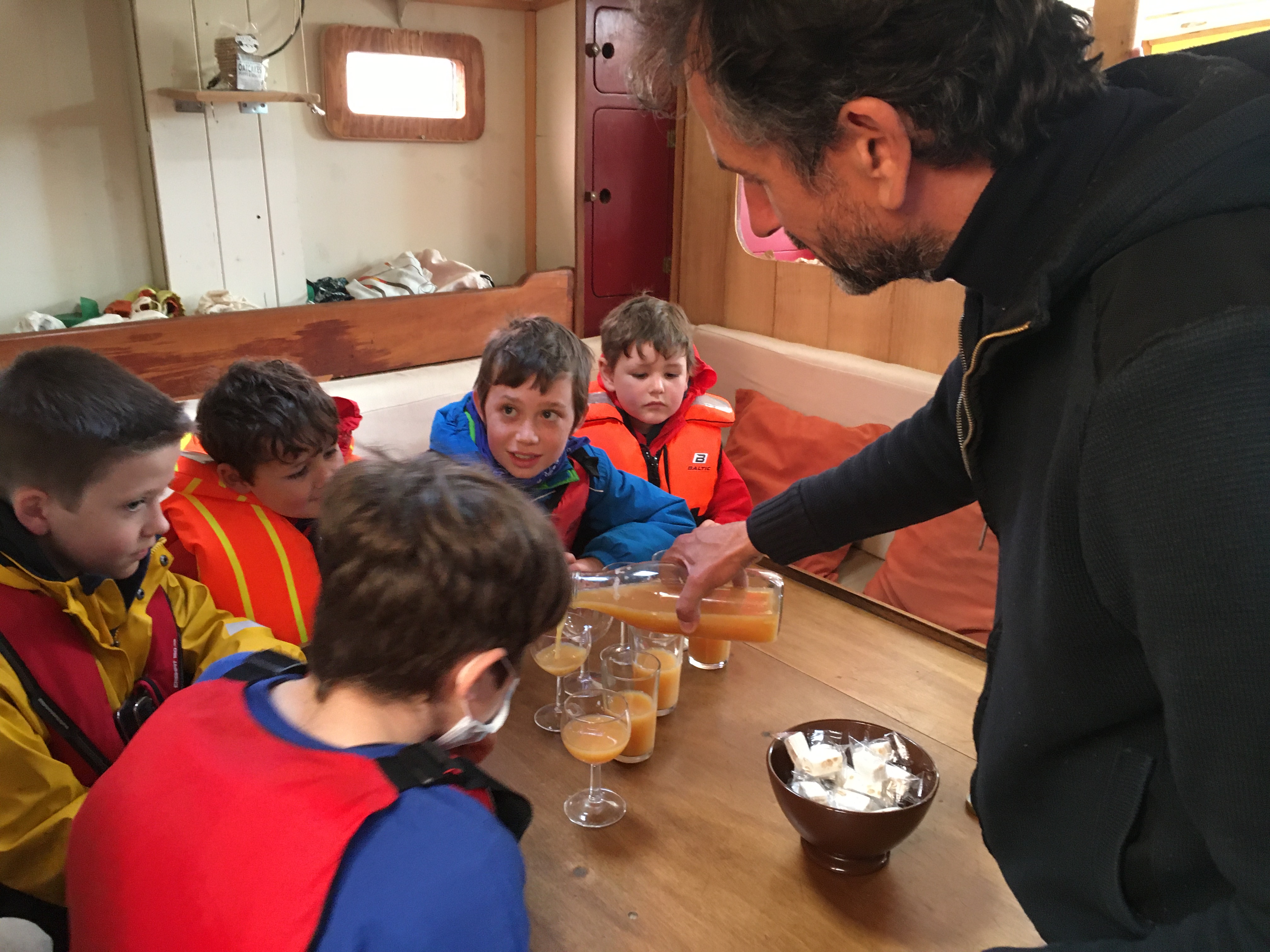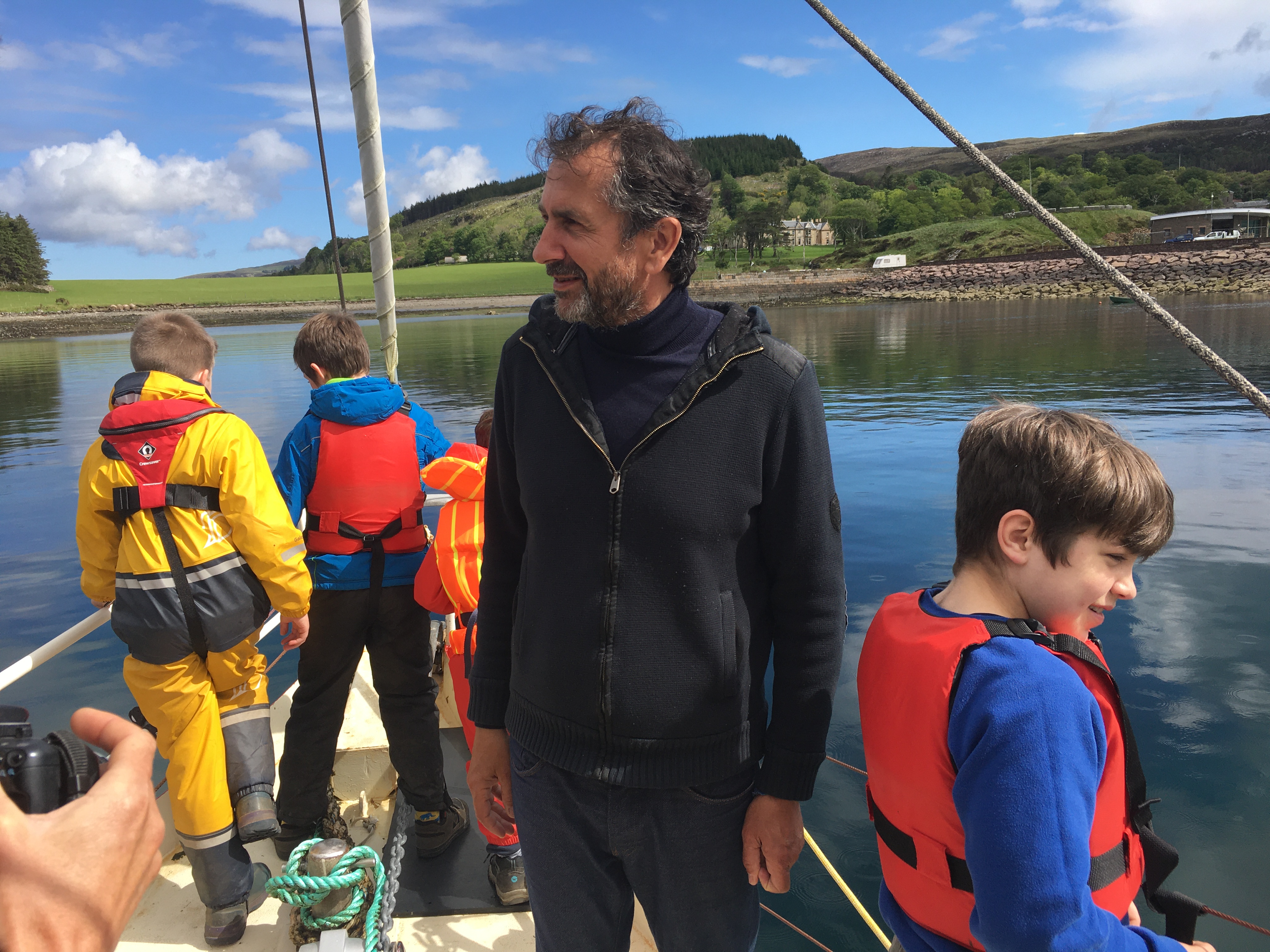 Over the last two years we have been corresponding with a French School in Brittany – their teacher Bea has taken some time out to sail to Scotland and visit us here on Raasay. Their voyage has an Eco focus and a cultural exchange. Pupils were delighted to welcome them to Raasay and to our school and our first day of meeting together involved a trip out onto the beautiful schooner, The Bilbo. The children had a wonderful time learning about the boat, the journey, Breton culture and language. The pupils and staff were treated to delicious organic apple juice from their farm in france and traditional nougat. We also met the school mascot – Cookie the sheep who has been travelling with them. Tomorrow we look forward to welcoming them to our school where they will share with us pictures from their blog and voyage before joining us for lunch. The children look forward to sharing their Gaelic poetry which they are learning for the Mod and holding a ‘lesson’ for our visitors on local history and culture.