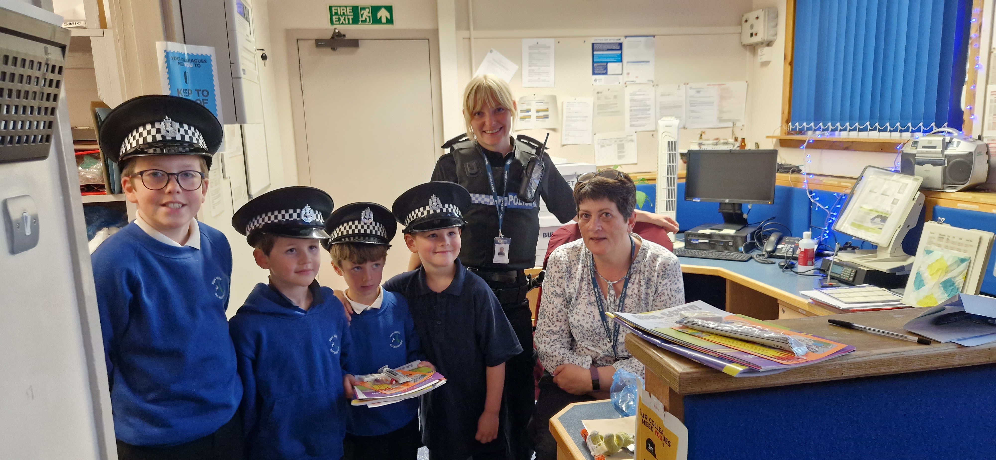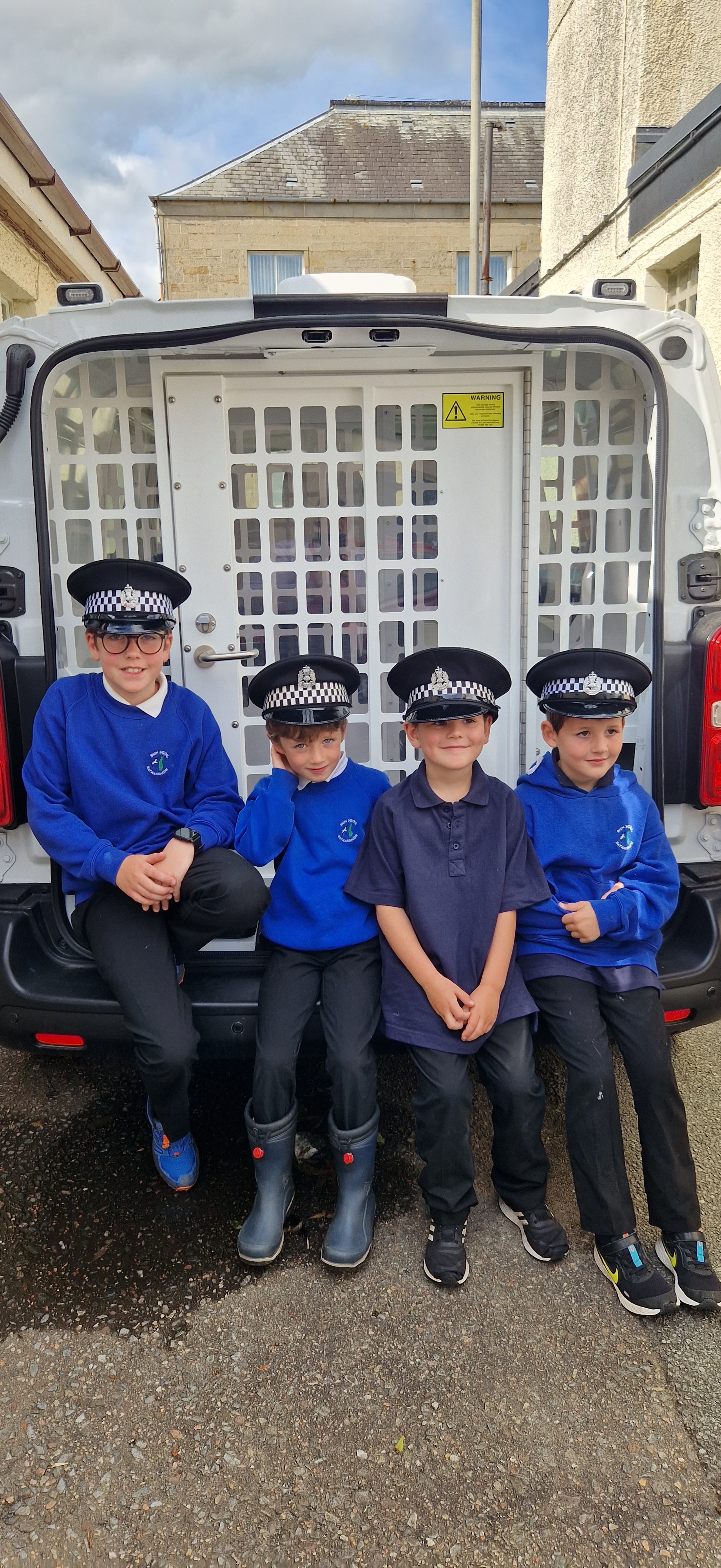 On Thursday 24th August, pupils enjoyed a visit to the Portree Police Station where they learnt all about the roles and responsibilities of our Police Officers and had a tour of the Station and cells. The pupils were all really engaged in the experience and all had very interesting questions to ask the officers. Unfortunately, they were all arrested for ‘being naughty’ and fingerprinted! However, this was a total miscarriage of justice and they were all released on good behaviour!