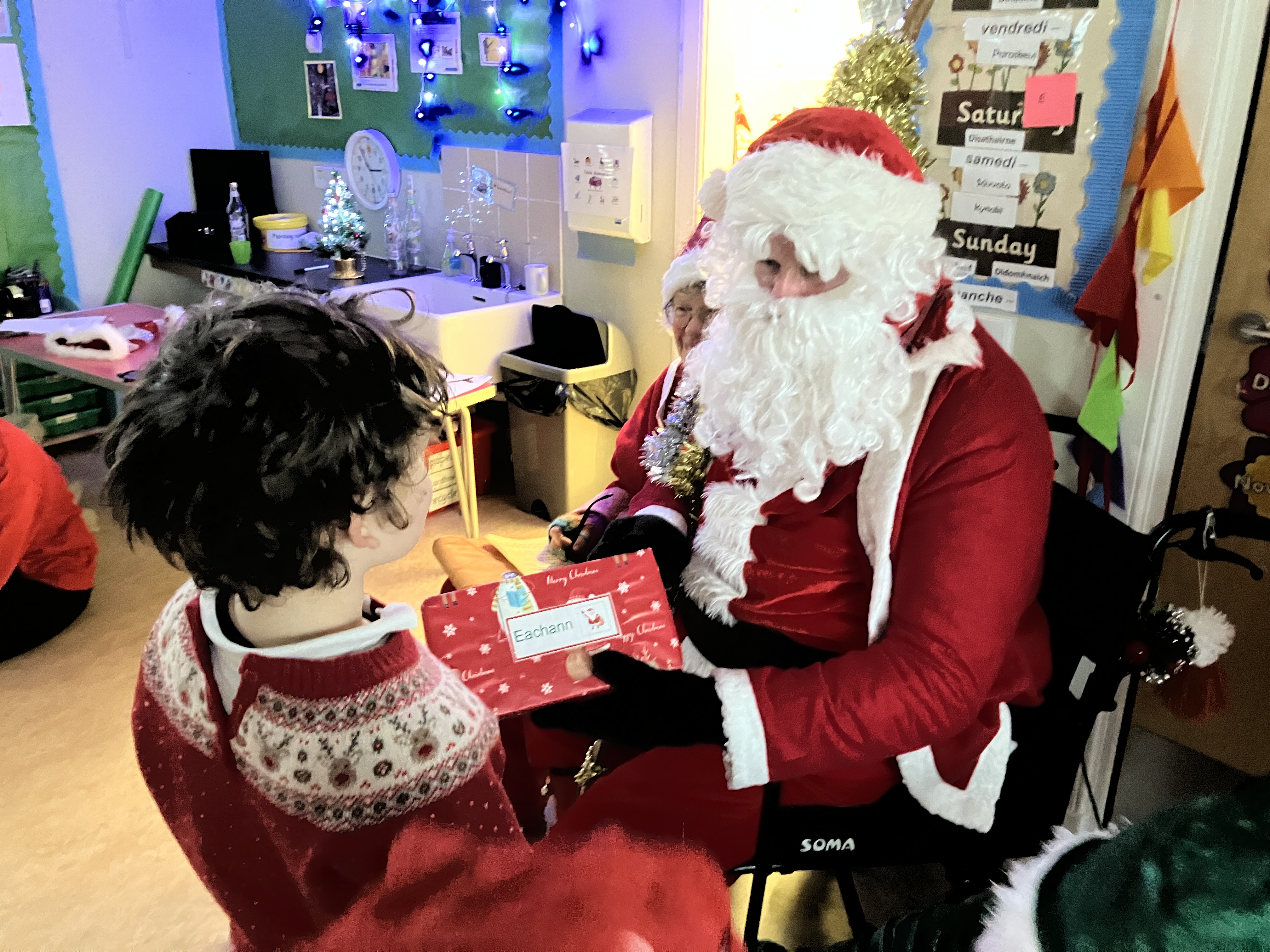 Pupils were delighted to have a visit from Santa and his Elvines on the day of their Christmas Party. Santa took time out of his busy schedule to drop by with his helpers to deliver some Christmas joy – and some presents! Santa had even composed an original song which pupils joined in with and had with him a placard of jokes. You might even notice from the pictures that his helpers brought along some ‘Chimney Oil’ which Santa uses to help his way up and down the chimneys!