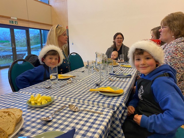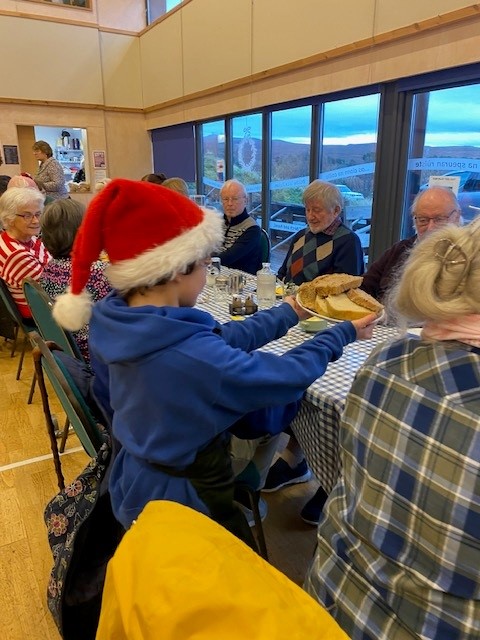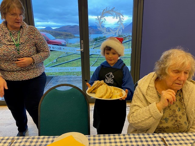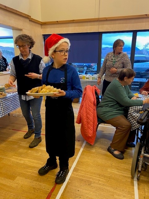 Pupils at Raasay Primary School helped to serve and help out at the recent Community Kitchen lunch held in the local Hall. This is part of their ACORNS Enterprises reaching out to support other events on the island outwith school. The boys really enjoyed the opportunity to meet with those who attended and enjoyed the delicious soup and puddings produced by Raasay Community Kitchen. We hope to be doing this as a regular event every month as part of our community engagement.