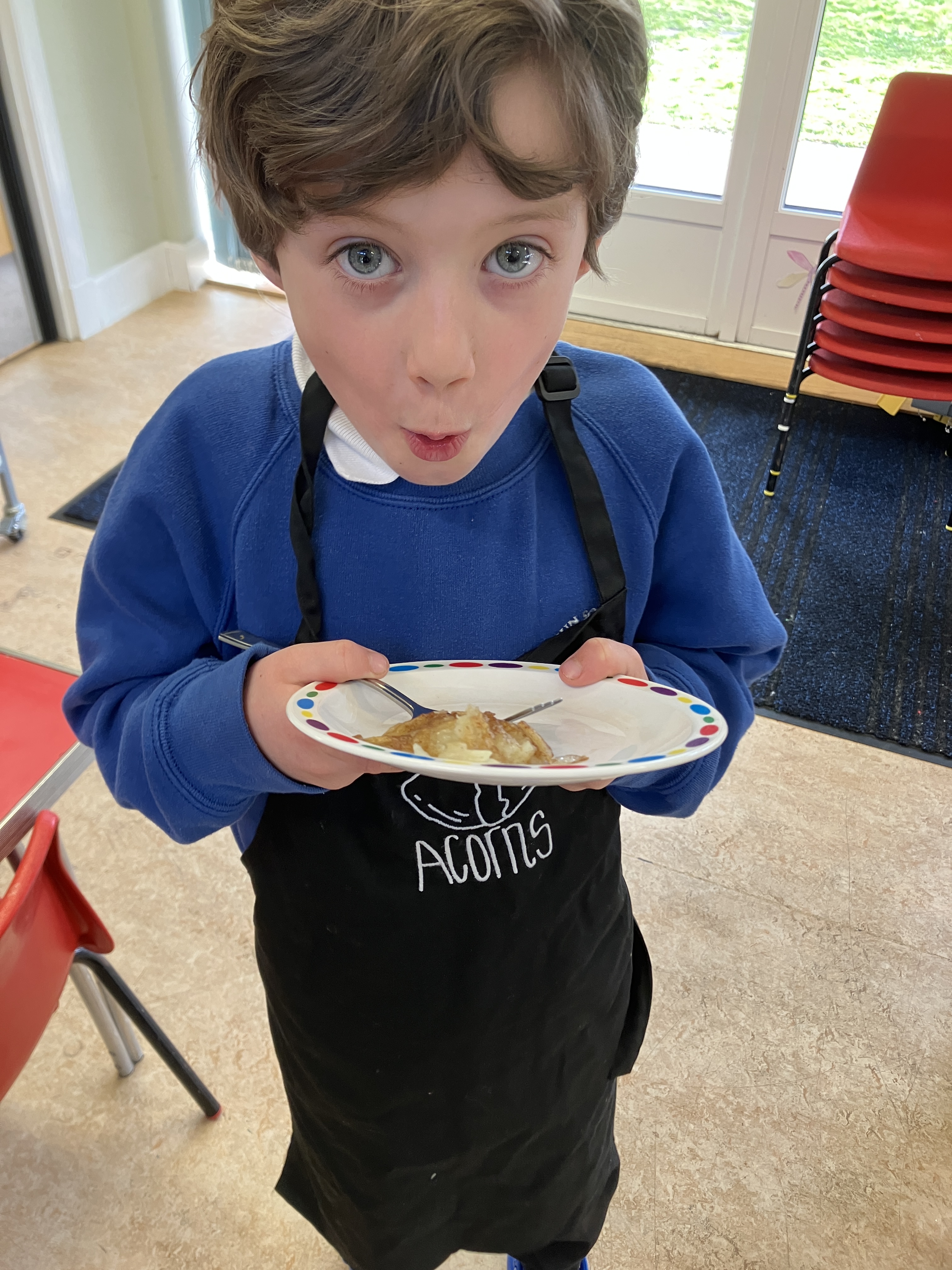 As part of their World War II topic, pupils have been learning about rationing and the types of foods that would be available to people during the war. One of the recipes they tries out was ‘floddies’ – a type of potato cake. Pupils researched what recipes would be used and, as part of their writing lesson, wrote out the recipe and followed it to make the floddies. All agreed they were delicious and some were going to try making them at home.