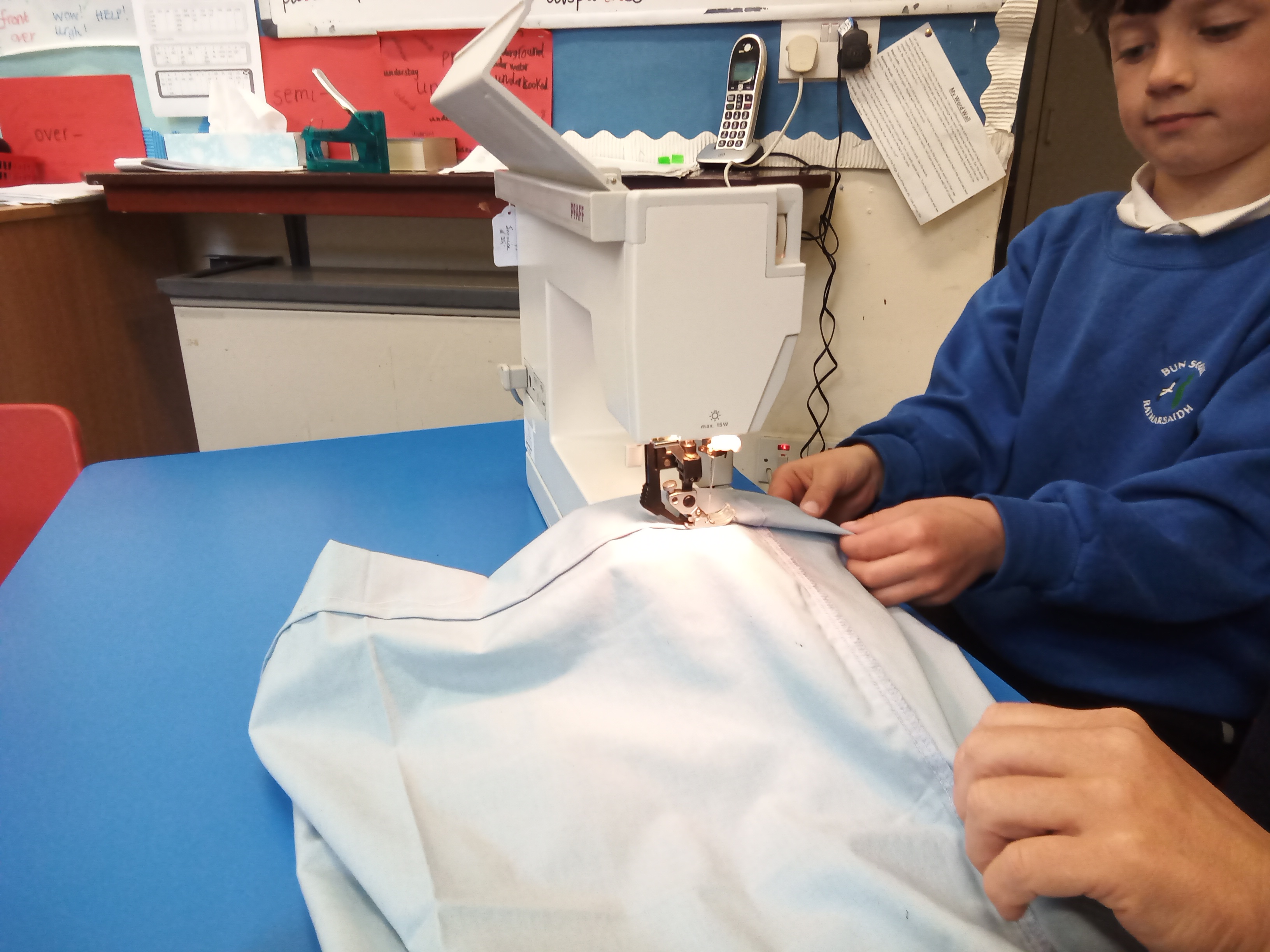 Pupils were learning some valuable skills with the sewing machine while repurposing old pillow cases. Ms Duffus obtained some pillow cases that were no longer being used and pupils helped to sew them into usable bags which could help reduce the use of plastic bags.