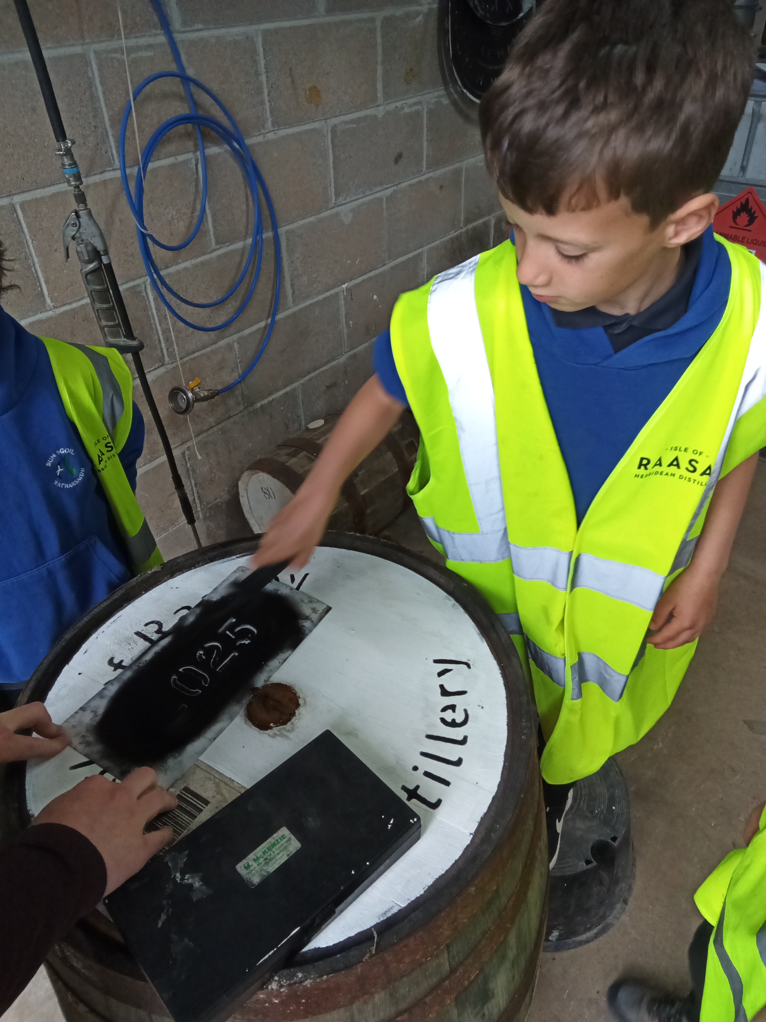 Raasay Distillery – “On Monday we went to the Distillery and made whisky. Firstly, we looked at all the rooms and some of them were a bit dirty, so we cleaned them up. I stripped the bed first and put some new pillow cases, duvet dover and sheet on. We went on a tour of all the whisky making equipment and learnt what they did. Some of the machines were over three hundred degrees Celsius. Afterwards we put five kilograms of yeast into water that was at exactly thirty-six degrees Celsius and then we mixed it up with a large electric stirrer. We went up to the warehouse and signed a barrel with our names on it. After that, we were able to fill it with two hundred litres of whisky, but we had to be careful not to put too much in it. We practise measuring at school so this helped us to weigh all the yeast. When I am older I would like to work at the Distillery. I would like to say a big thank you to all the people who helped make this visit amazing.”