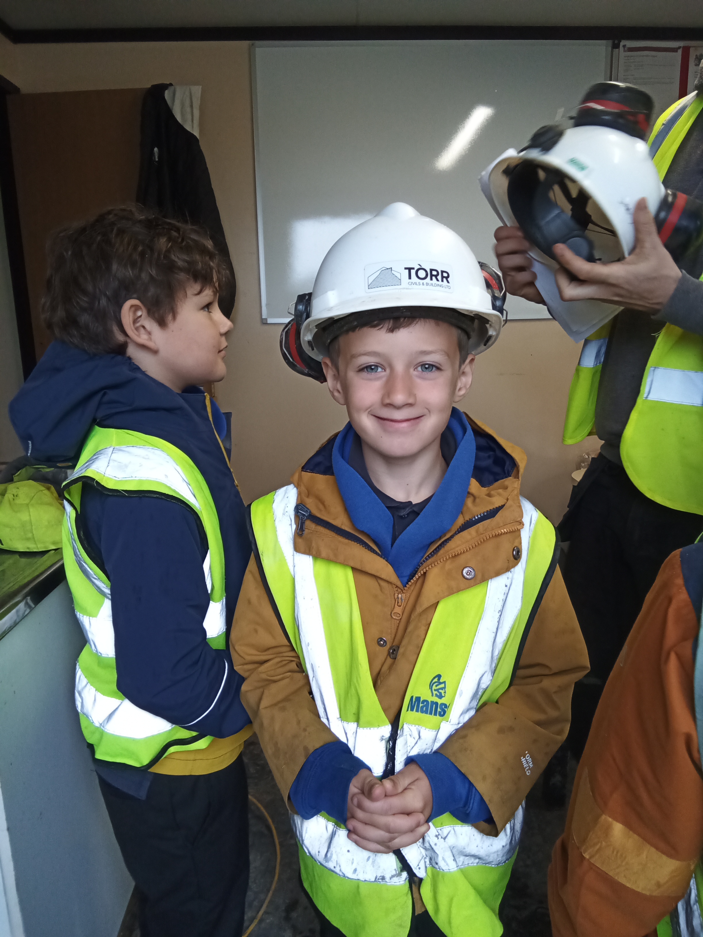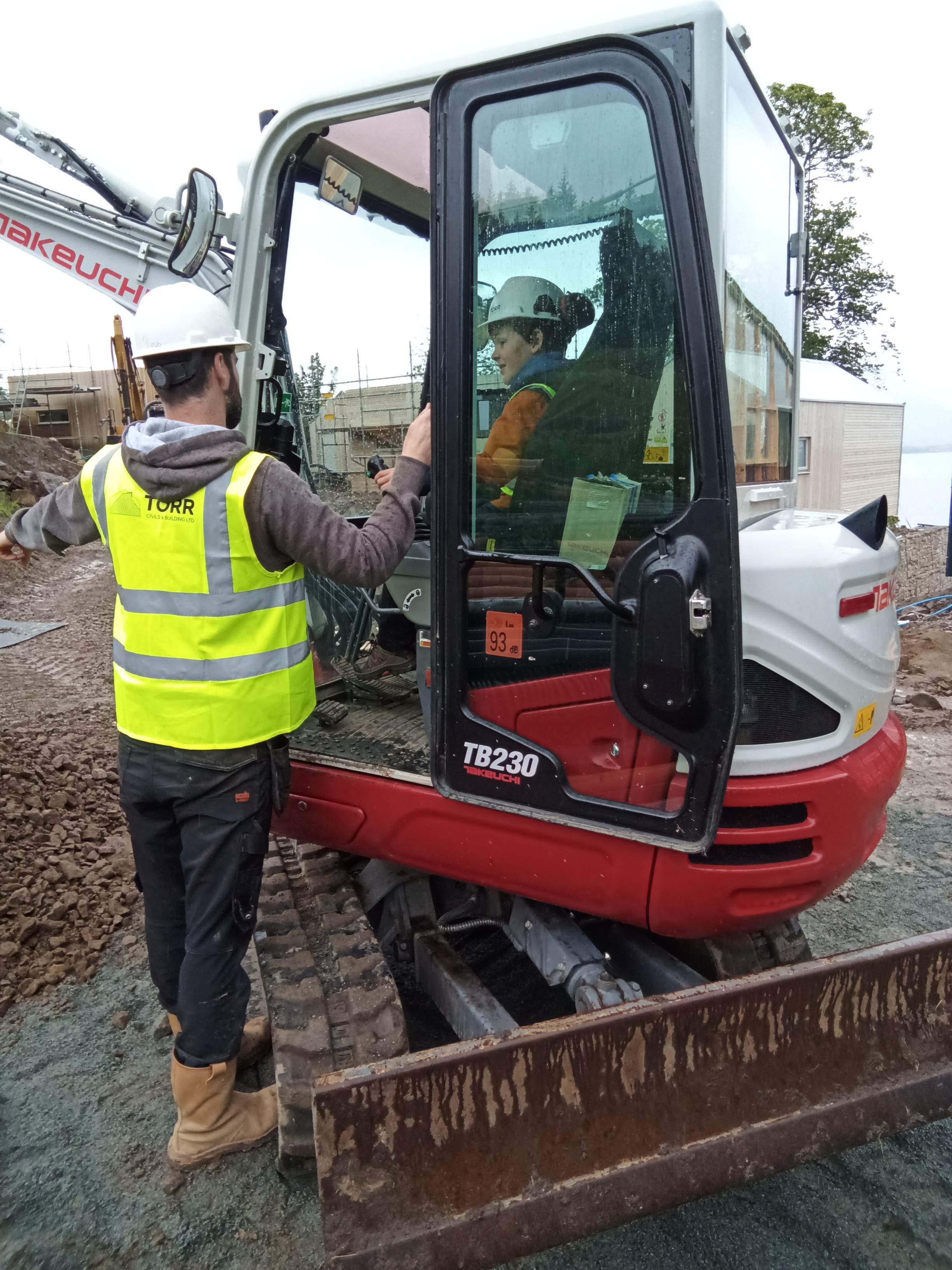The Building Site – “On Monday 9th June the entire school of Raasay Primary went to a building site to see how everything worked. At the building site we were taught about all the trades, there were: architects, glazers, tilers, engineers, bricklayers, electricians, plumbers, roofers, surveyors and vehicle drivers. We were shown all the blueprints and drawings and where the wires and pipes would be placed because we needed to know how the huts were built to understand the technique. After that, we went outside to drive an excavator. The excavator was equipped with a rotatable bucket which could turn three hundred and sixty degrees which allowed you to dig sideways. I loved moving gravel and digging holes. I leant the skills needed to drive a digger such as: being focussed, teamwork and being observant. I can see myself driving large excavators in mines and building sites in the future. At the end we said thank you for such an exciting experience, and then we went back to school. Thank you to Norman and the builders for giving us such a fun day!”