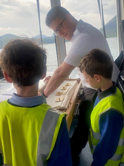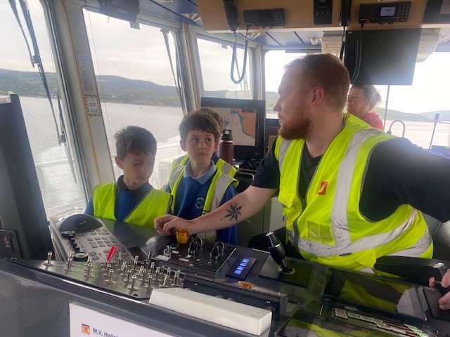 MV Hallaig – “On Thursday 12th June we visited the Hallaig where we learnt all about the machinery. On the ferry we learnt about how all the engines work. We saw all the tools used to fix the engines as well as a touchscreen to control the engines. We also met both of the engineers, along with the Skipper. Furthermore, we saw how to get the cars off and on as well as seeing the lifeboat and liferafts. They even showed us what controls the anchor and what holds it up. We learnt about the hydraulics for the ramps. It was very interesting to see the hydraulics in action. To work on a Calmac ferry you have to be focussed, organised, have good teamwork and be calm and friendly. Excitingly, we went to the wheelhouse where we learnt how to use the radar and binoculars. We learnt how to spot other boats in the area. When I am older I would like to work on a Calmac ferry until I am fifty-five years old. Thank you for letting us do this. The best crew and best ferry ever!”