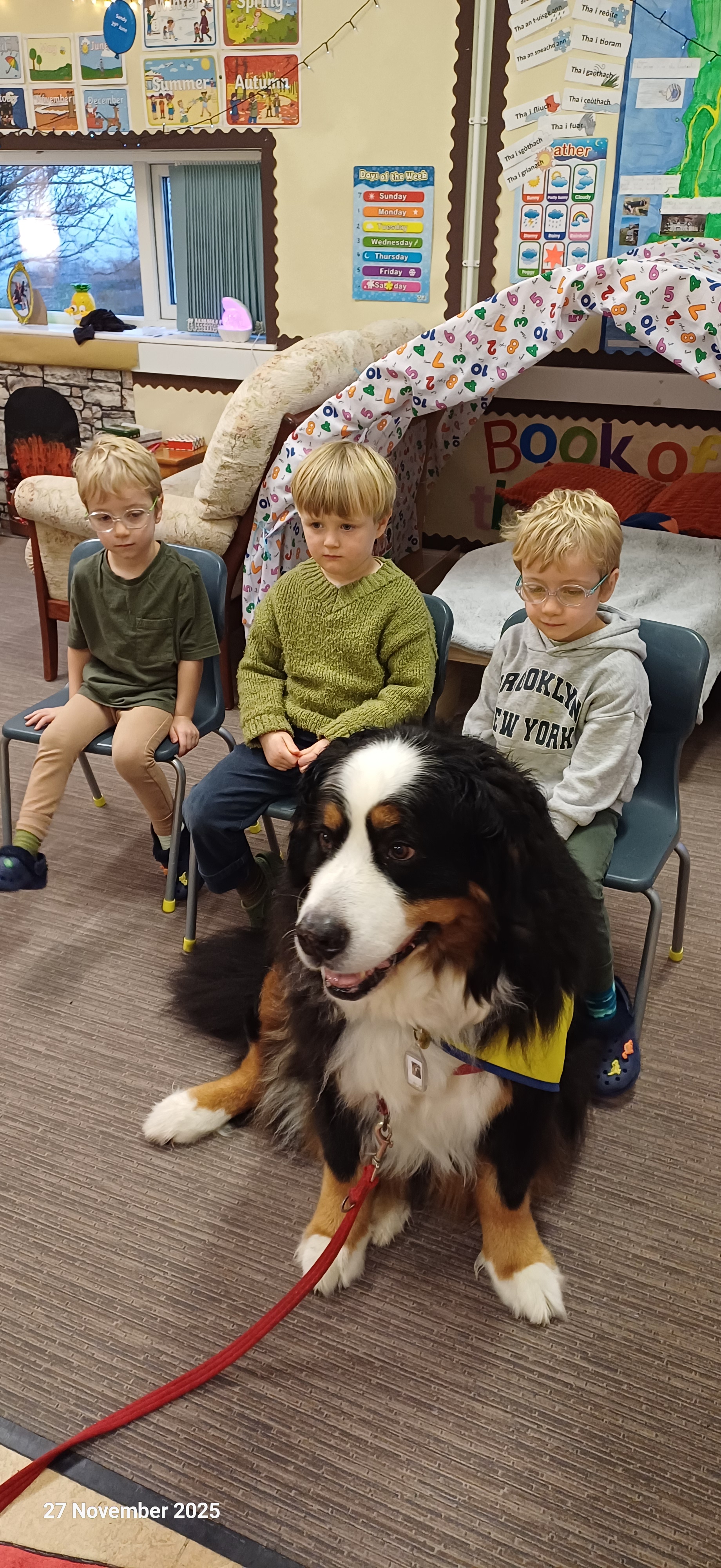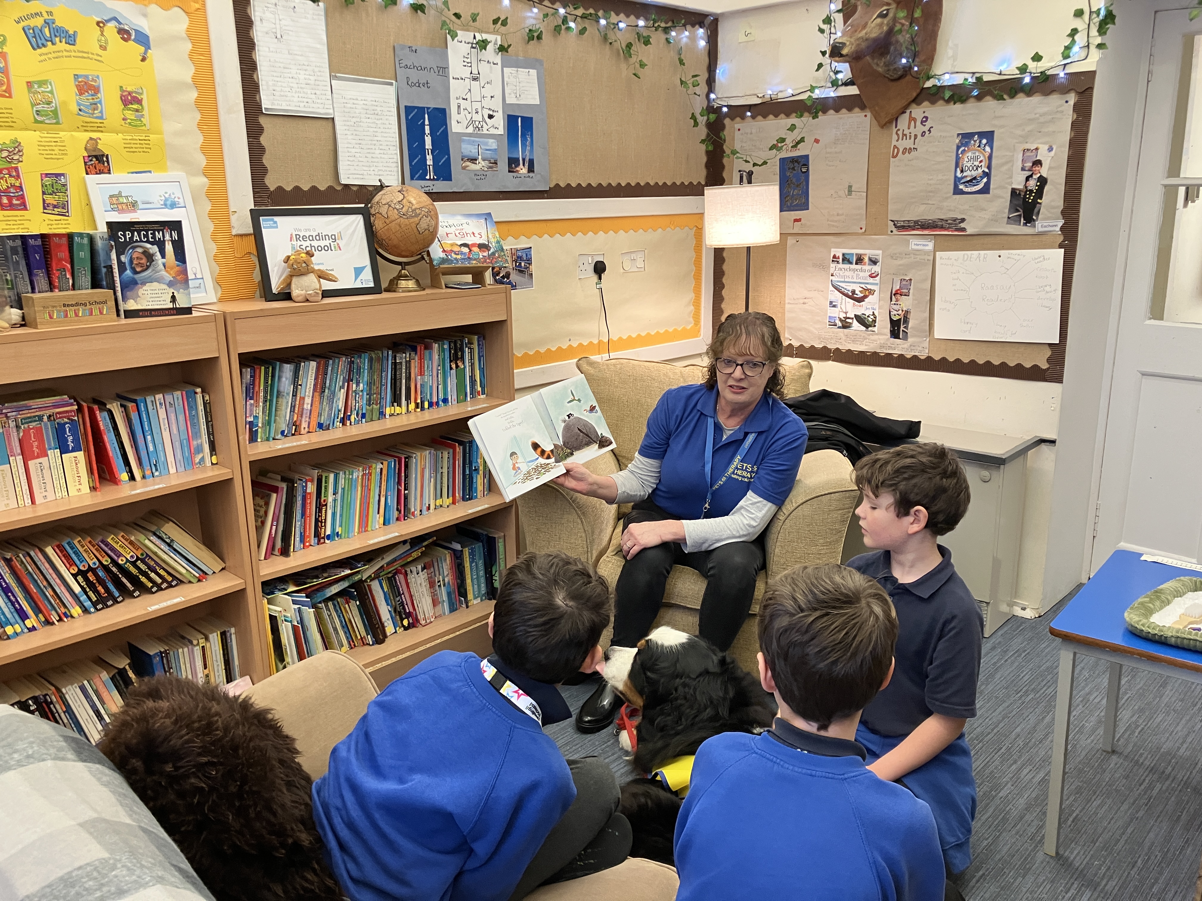 On Thursday 4th December we had a visit from our Pets as Therapy dog, Freya along with Catherine. The boys thoroughly enjoyed choosing a story for Catherine to read and then they took turns to read to Freya. We look forward to her next visit.