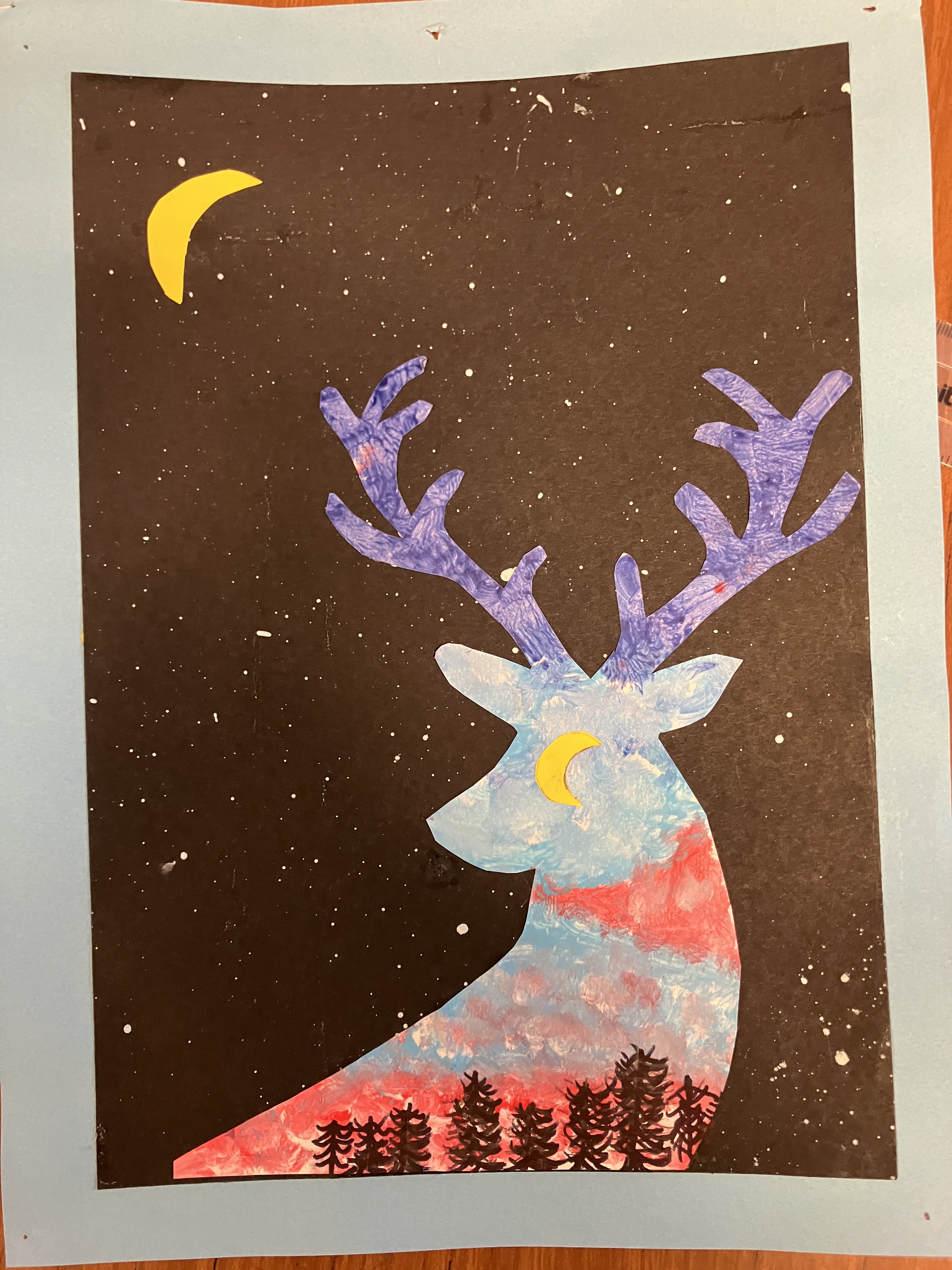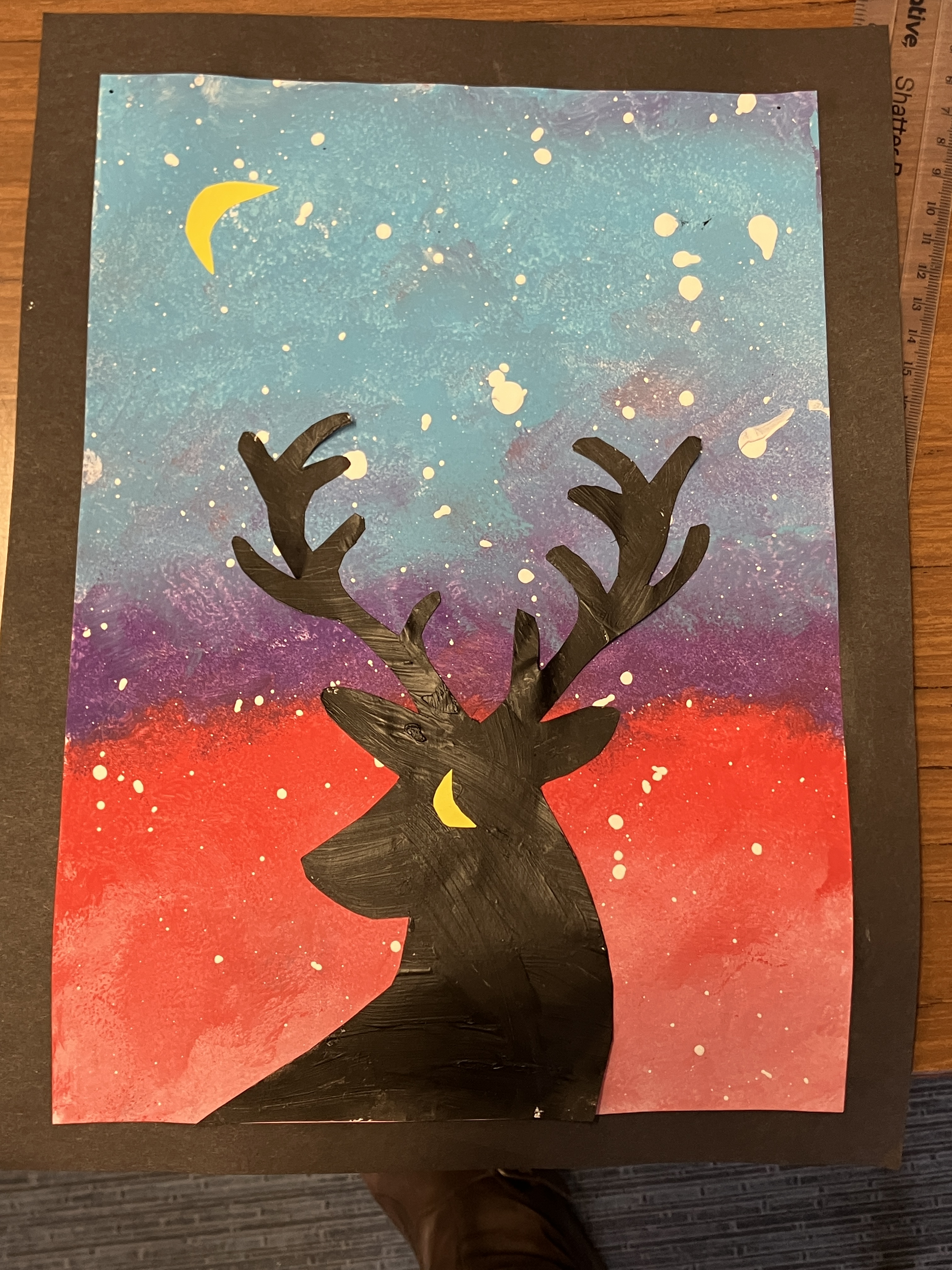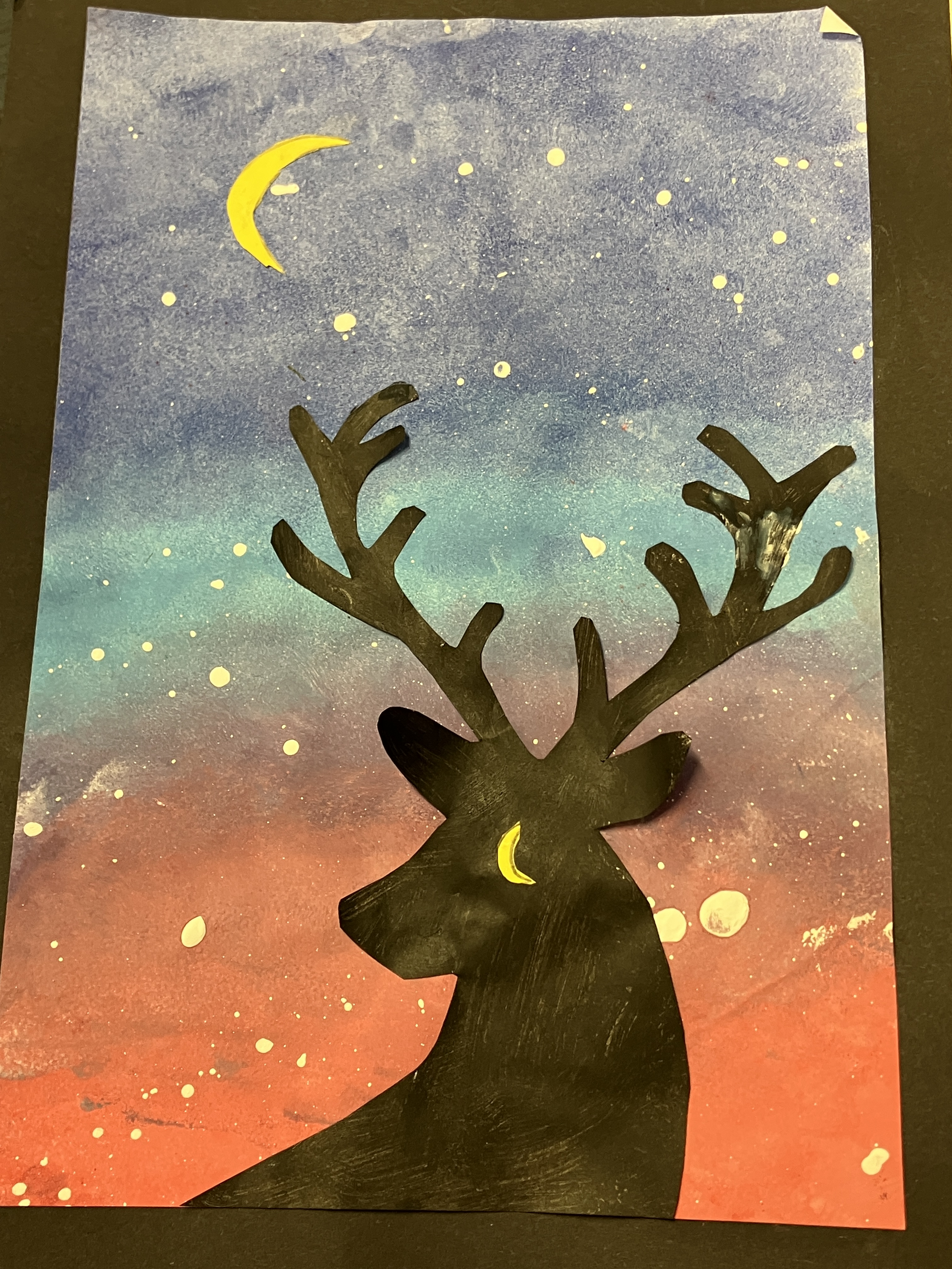 During their art lessons the boys also produced some lovely silhouetted Christmas stag pictures using the effects of shadowing and silhouette to create a striking image. We think they look great.