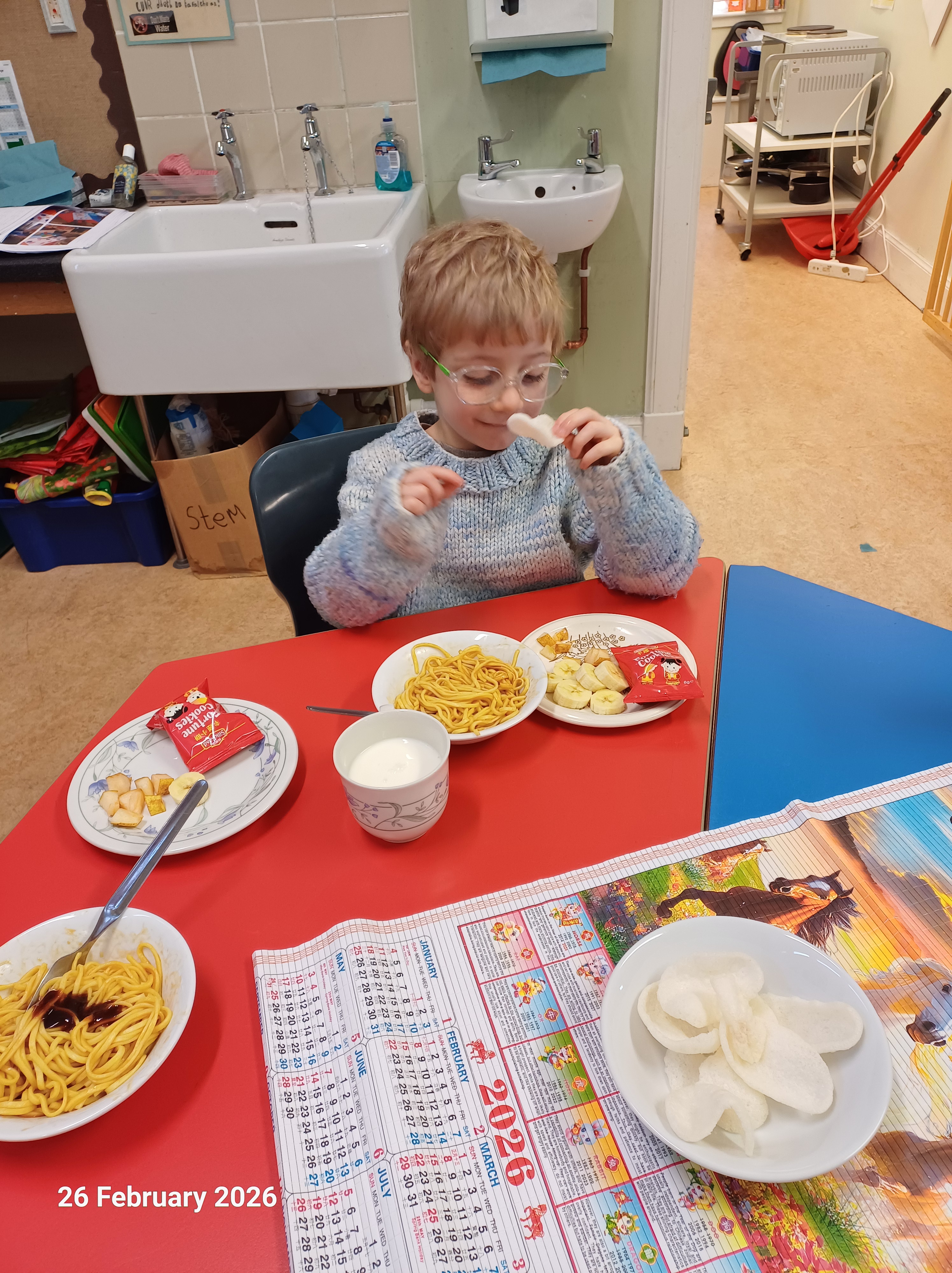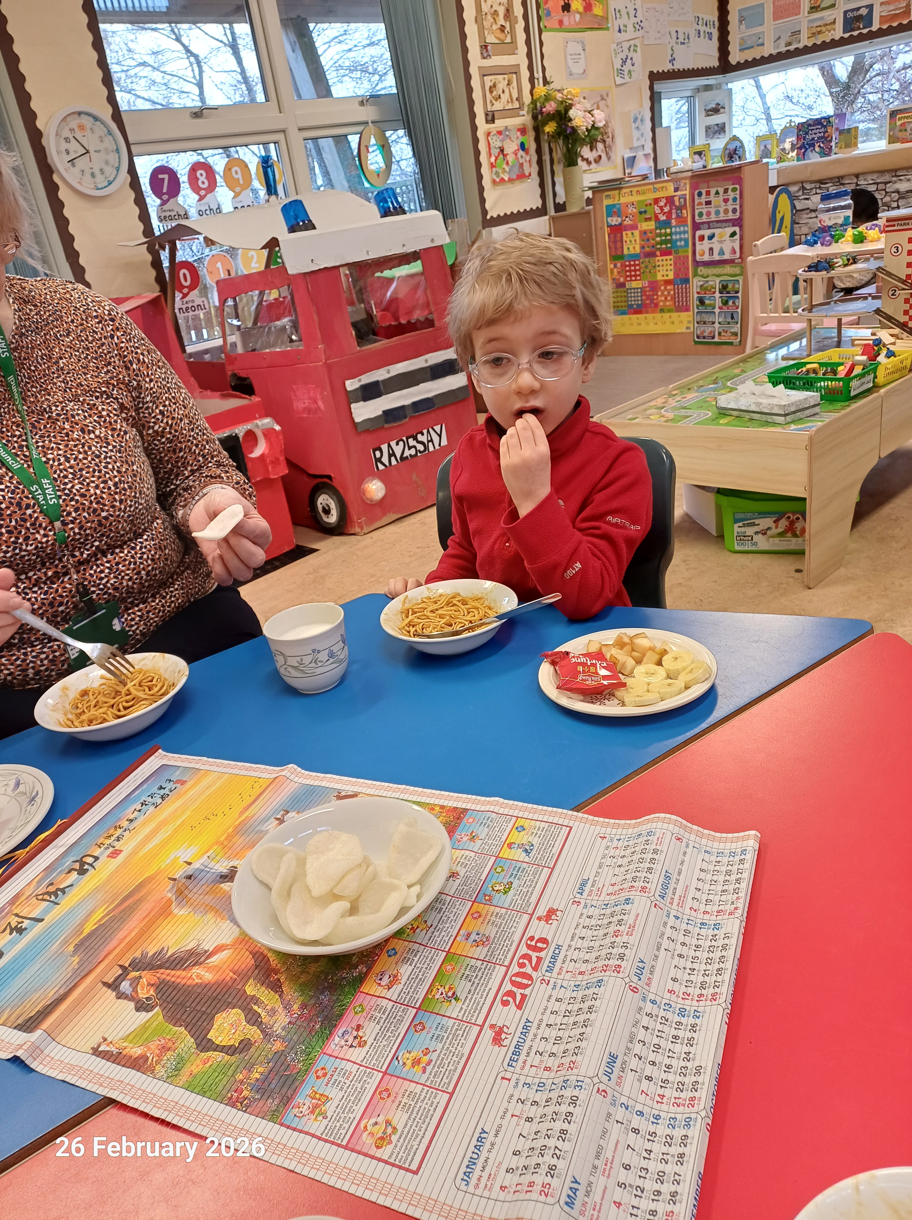 Pupils in Raasay Nursery were learning about Chinese New Year. They learnt about 2026 being the Year of the Horse, Chinese Zodiak and traditional way of celebration. They also enjoyed a Chinese themed snack of noodles, hoisin sauce and a lucky fortune cookie. The boys also enjoyed sharing their learning with the older boys.