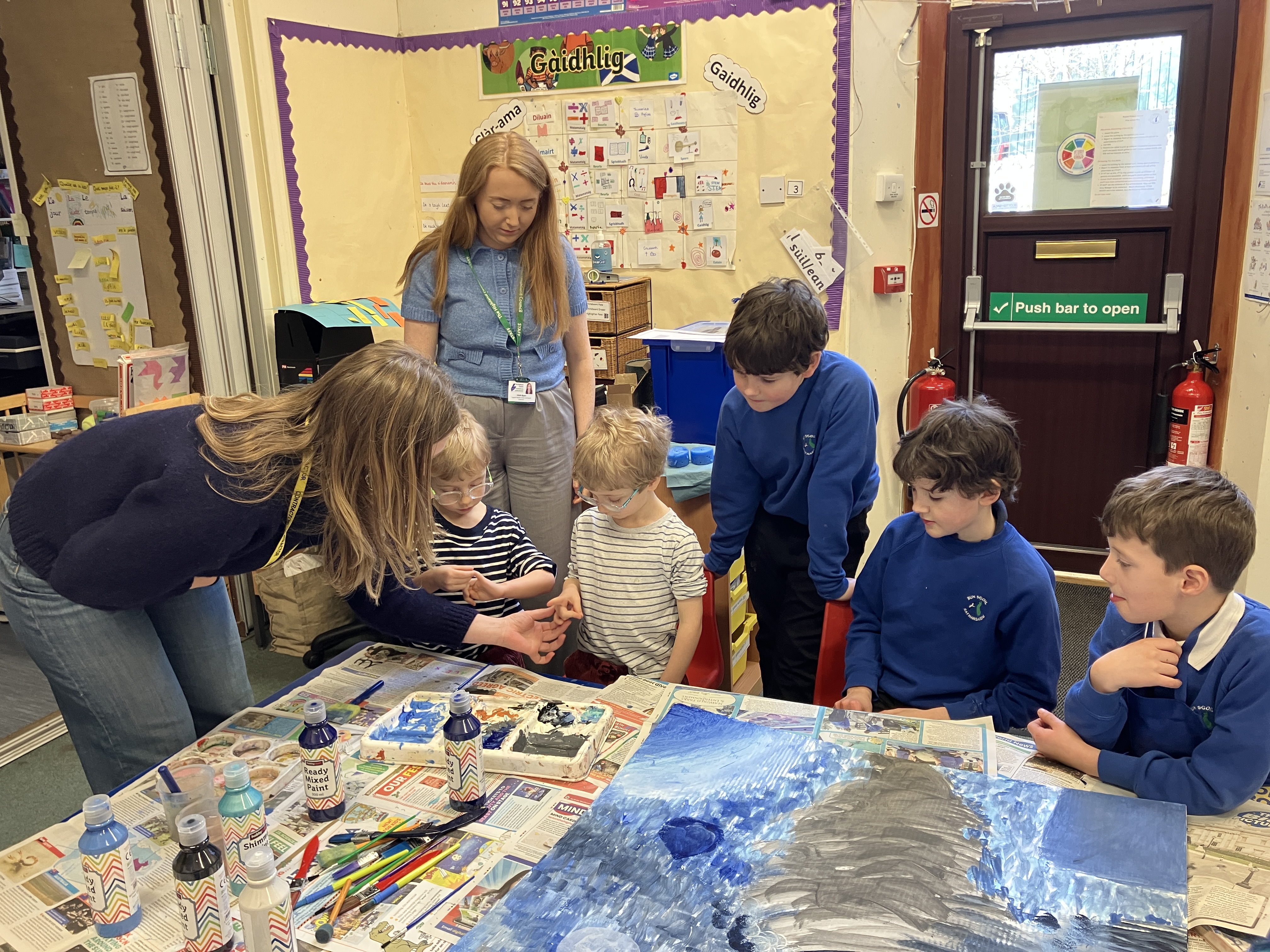 On Monday 23rd February pupils undertook a workshop provided by the National Library of Scotland in collaboration with Seachdainn na Gaidhlig (Gaelic Week). The pupils were tasked with producing an artwork inspired by the many, and varied, words and phrases in the Gaelic language for ‘rain’. The work they produced will be on display at the National Library of Scotland in Edinburgh – once we have dates for the exhibition, we will let you know.