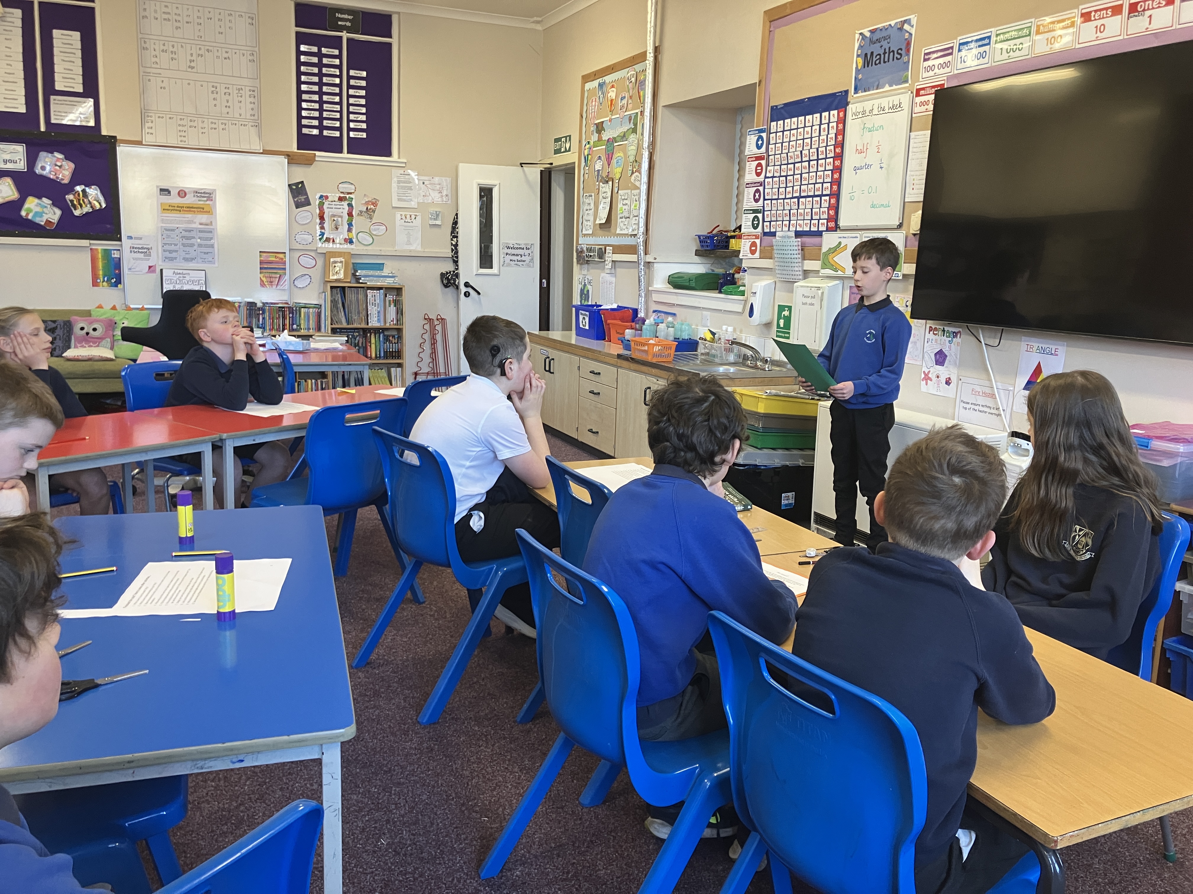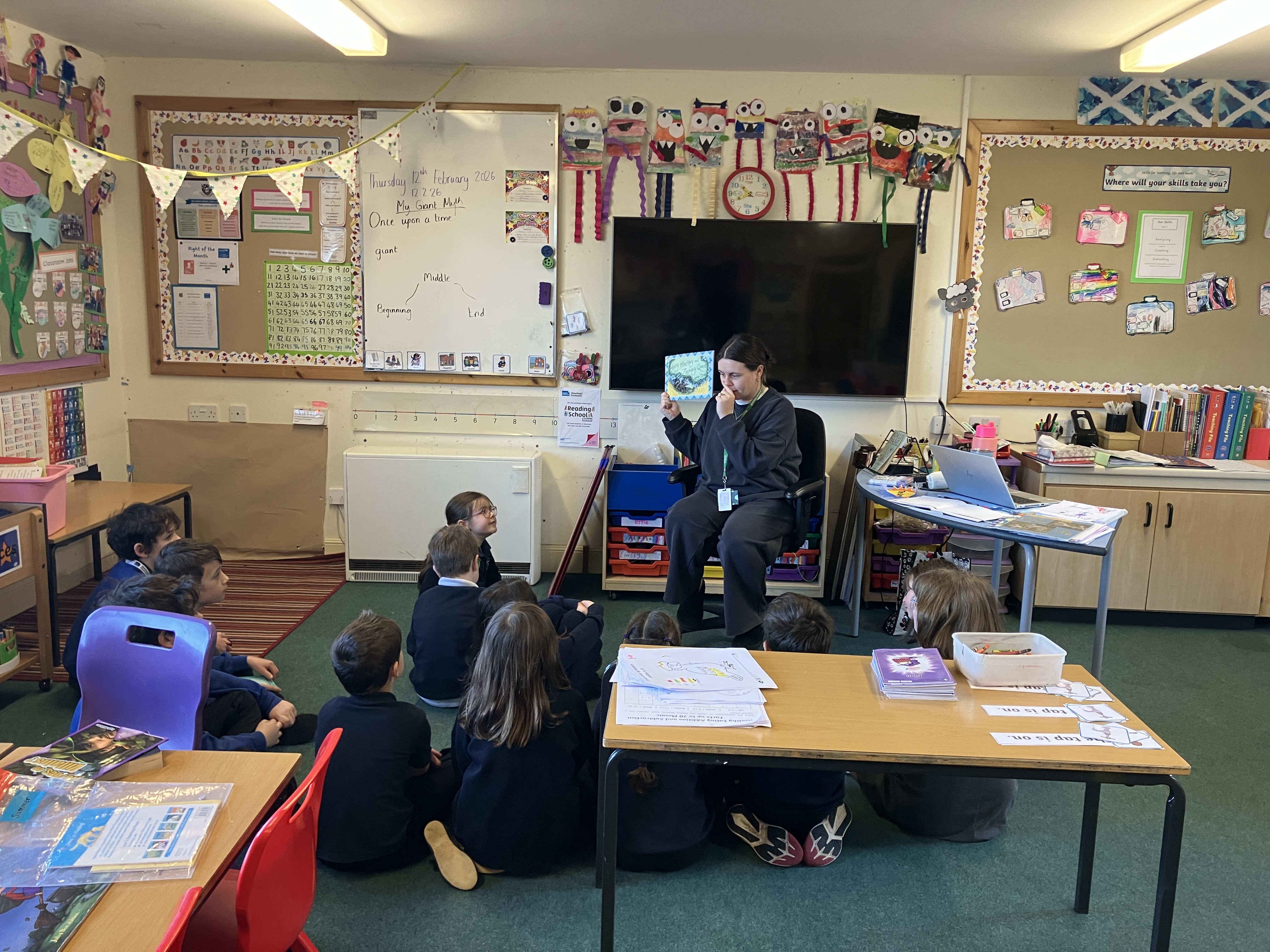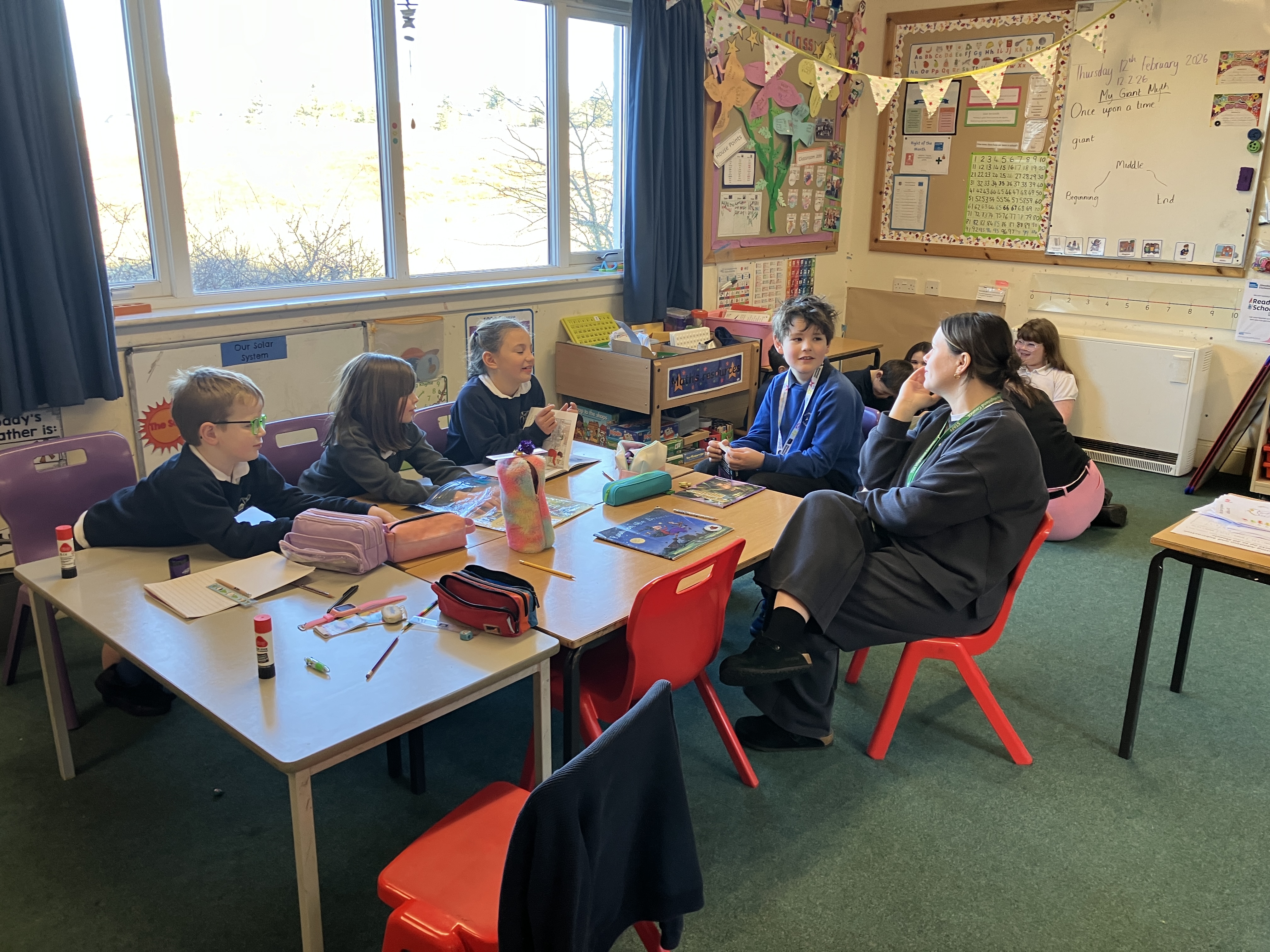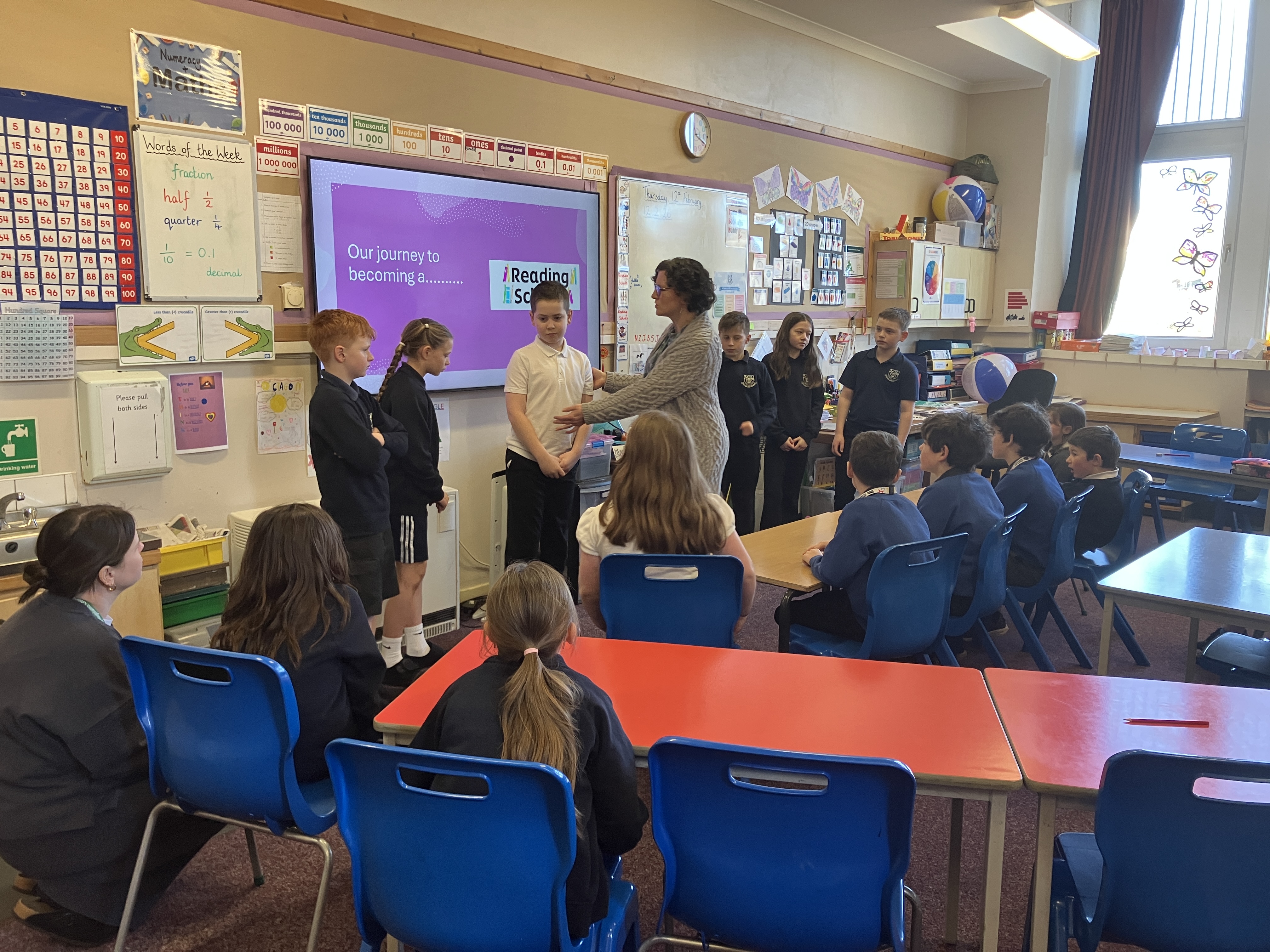 As part of our Reading Schools Silver Award journey, a whole school collaborative visit to Macdiarmid Primary School took place on Thursday 12th February. This was a fantastic opportunity for us to share our learning and make new friendships across our age and stage. The Nursery pupils joined the Macdiarmid Nursery for a fun morning of stories, activities and outdoor play. The staff had an opportunity to share their floorbooks work and other practices. The older pupils wrote their own stories based on the style of their class novel – The Wild Robot. They also challenged the other pupils to identify imagery in their writing. The feedback from everyone was that it was a hugely successful and enjoyable event and a fantastic opportunity to share ideas.