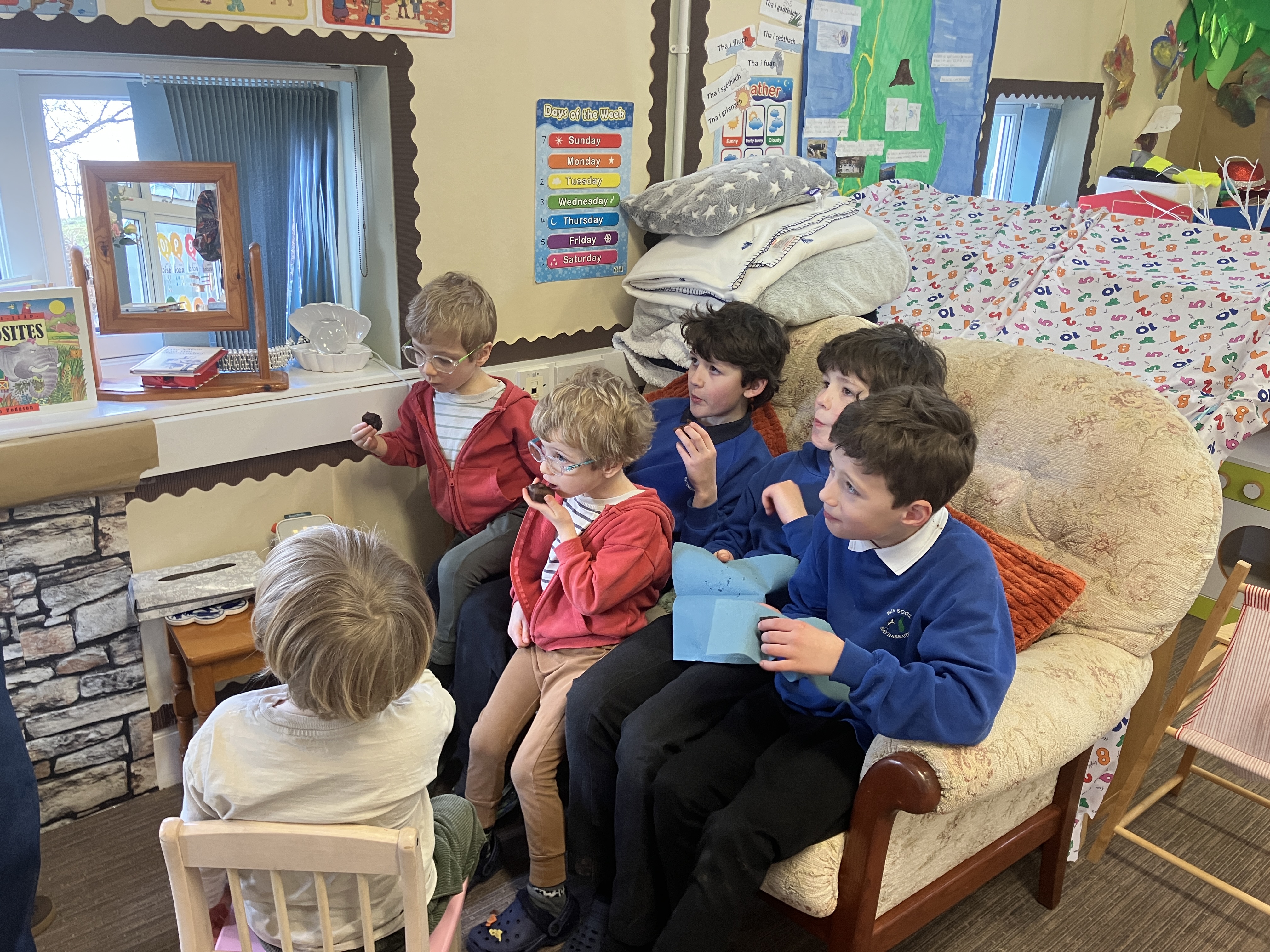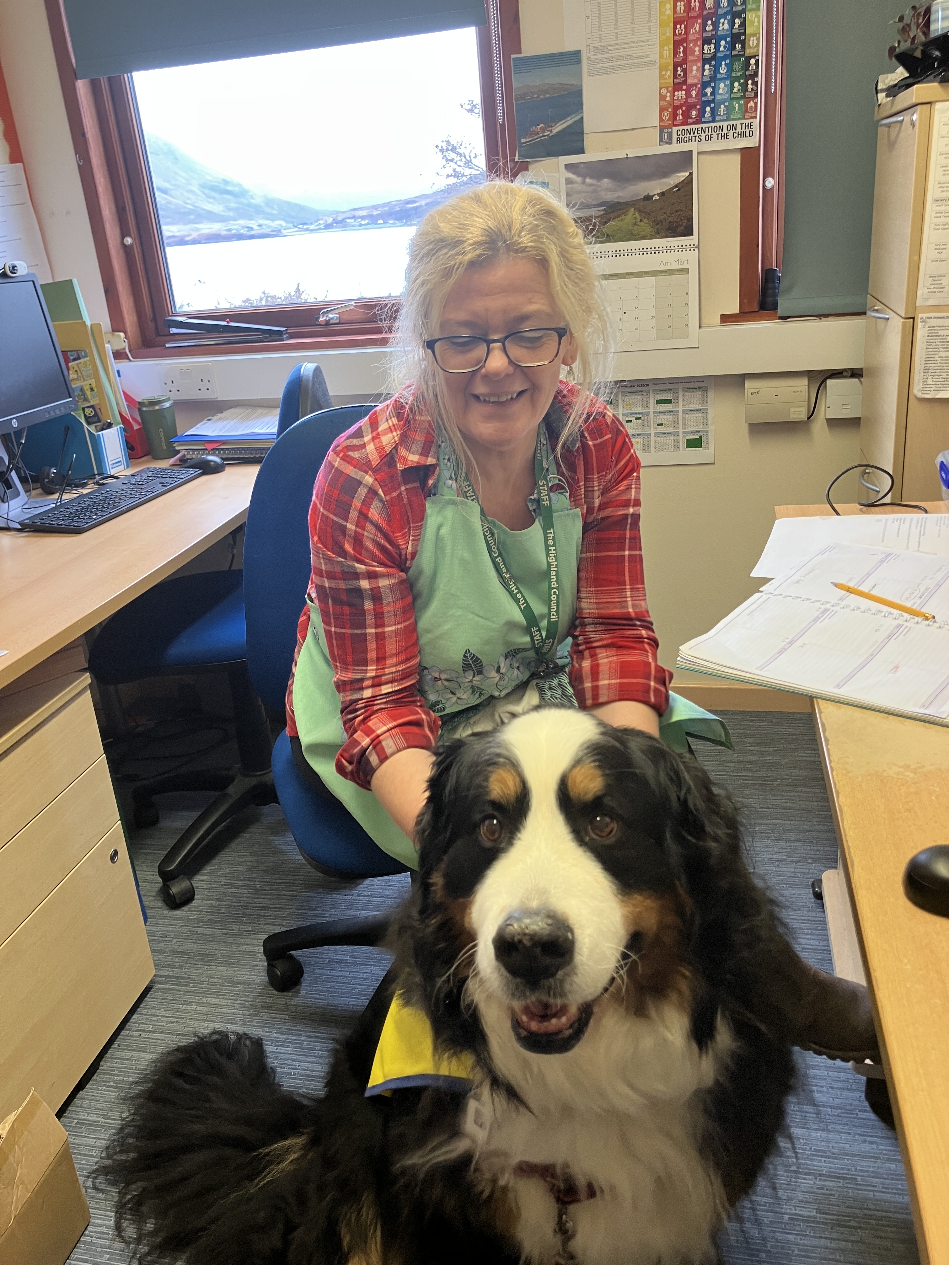 We celebrated World Book Day on Thursday 5th March. We all enjoyed coming to school dressed as our favourite characters or themes from a book. We were joined on the day by our Pets as Therapy dog, Freya and her owner Catherine. We particularly enjoyed reading the book they brought in – all about Bernese Mountain Dogs. We enjoyed sharing our books and stories between the Nursery and Primary School. The theme of World Book Day was ‘Go all in!’ so we explored our hobbies and interests and passions as part of this by creating an infographics poster. It turns out in Raasay Primary School that we are into our football, biking, engineering and cooking! We also explored how our interests can be developed through reading more about our hobbies and we are looking into buying books and stories relating to them. Our P6 pupil even suggested that we could create our own imaginative stories based on our interests and hobbies.