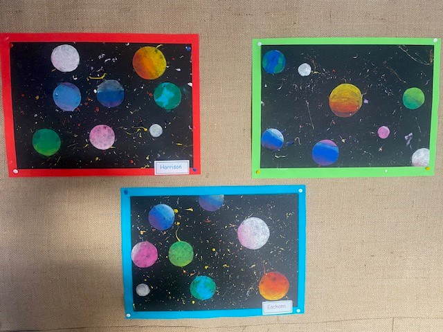 This term pupils in the upper school will be studying ‘Space’ and as part of their Art sessions they created artwork around the theme. The children were learning about the use of tone, texture, line, shading, perspective and colour and used these skills in their art. They also had to blend the colours to create the effects in the backgrounds.